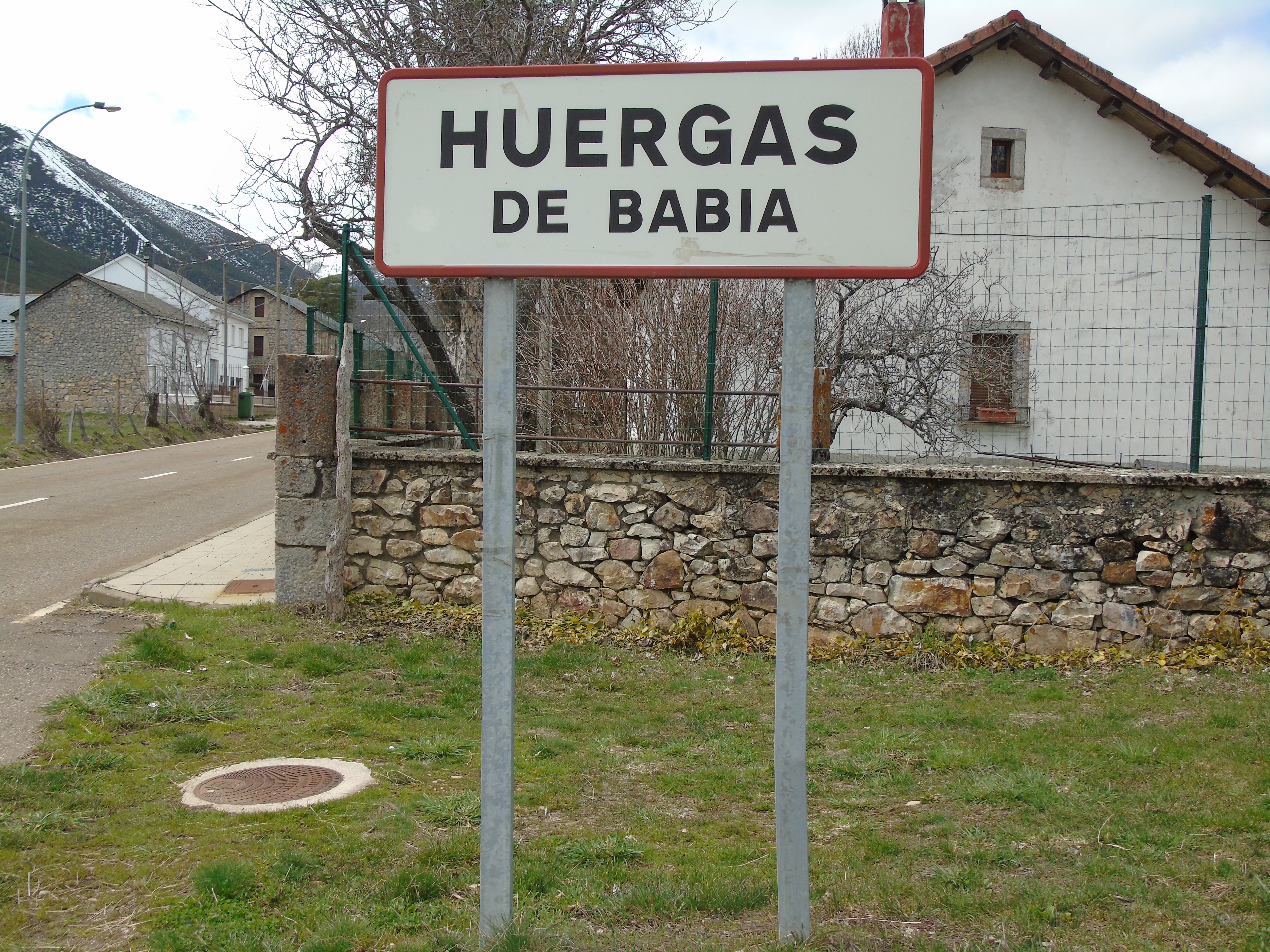 Español: Letrero de Huergas de Babia (Cabrillanes, León, España). |