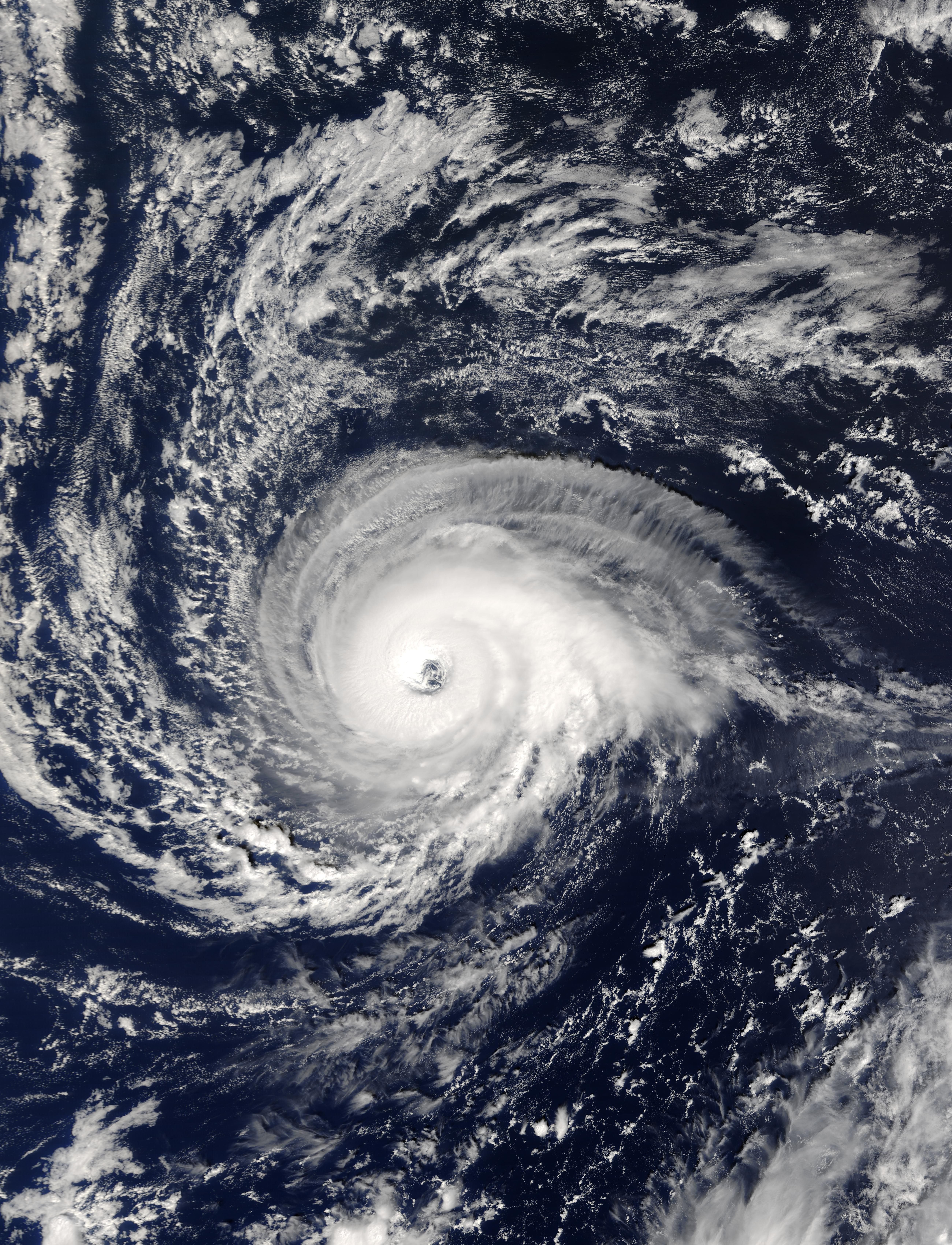 | Description | The MODIS instrument onboard NASA's Terra satellite captured this bird's-eye view of Hurricane Kate on October 3, 2003 at 13:35 UTC. At the time this image was taken Kate had sustained winds of 110 mph with higher gusts. Kate has taken the shape of a classic hurricane with a well-defined eye that is approximately 25 miles in diameter. The National Hurricane Center is predicting that Kate will strengthen over the next 24 hours. | ||