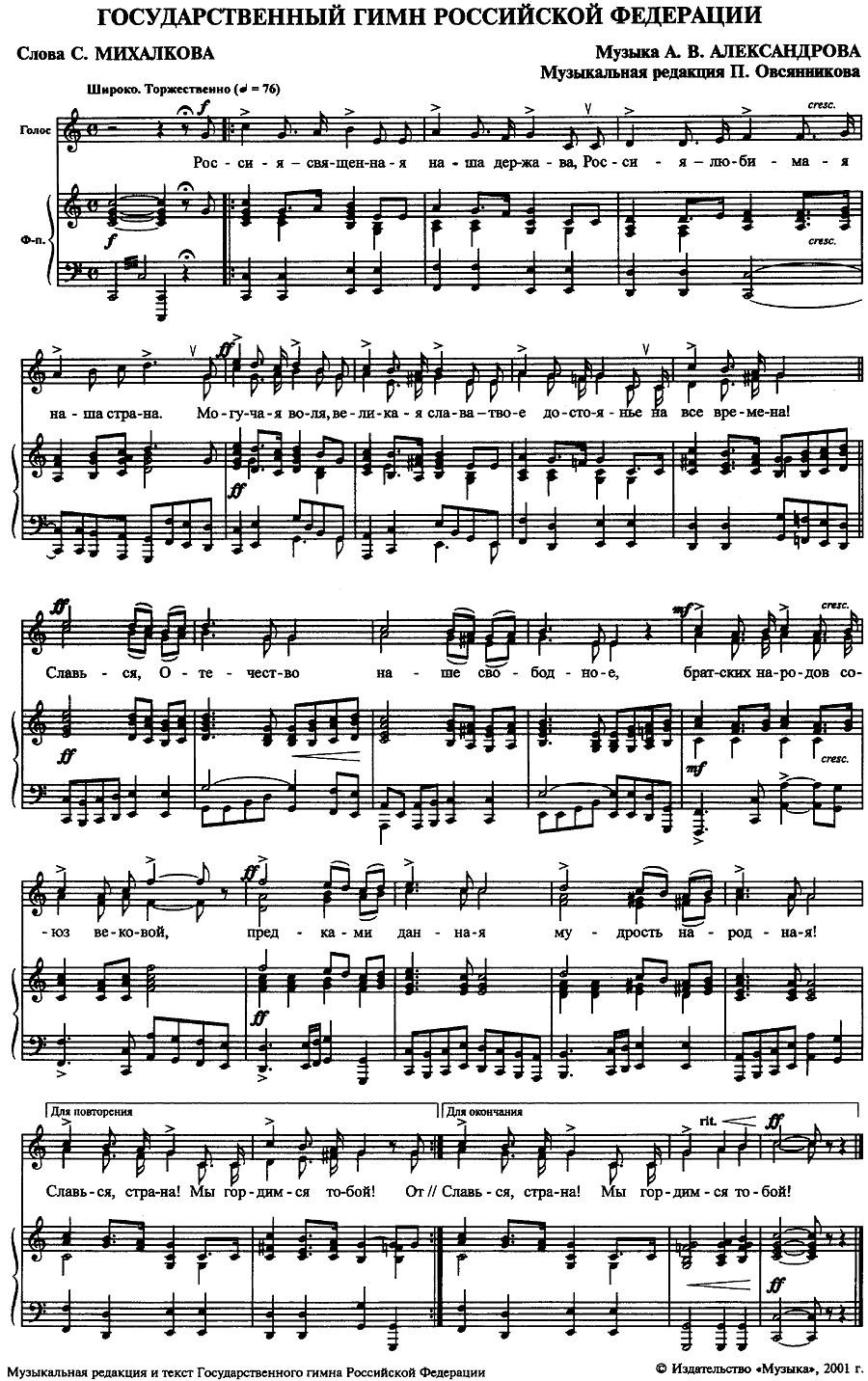 ملف:Hymn of Russia sheet music 2001.png