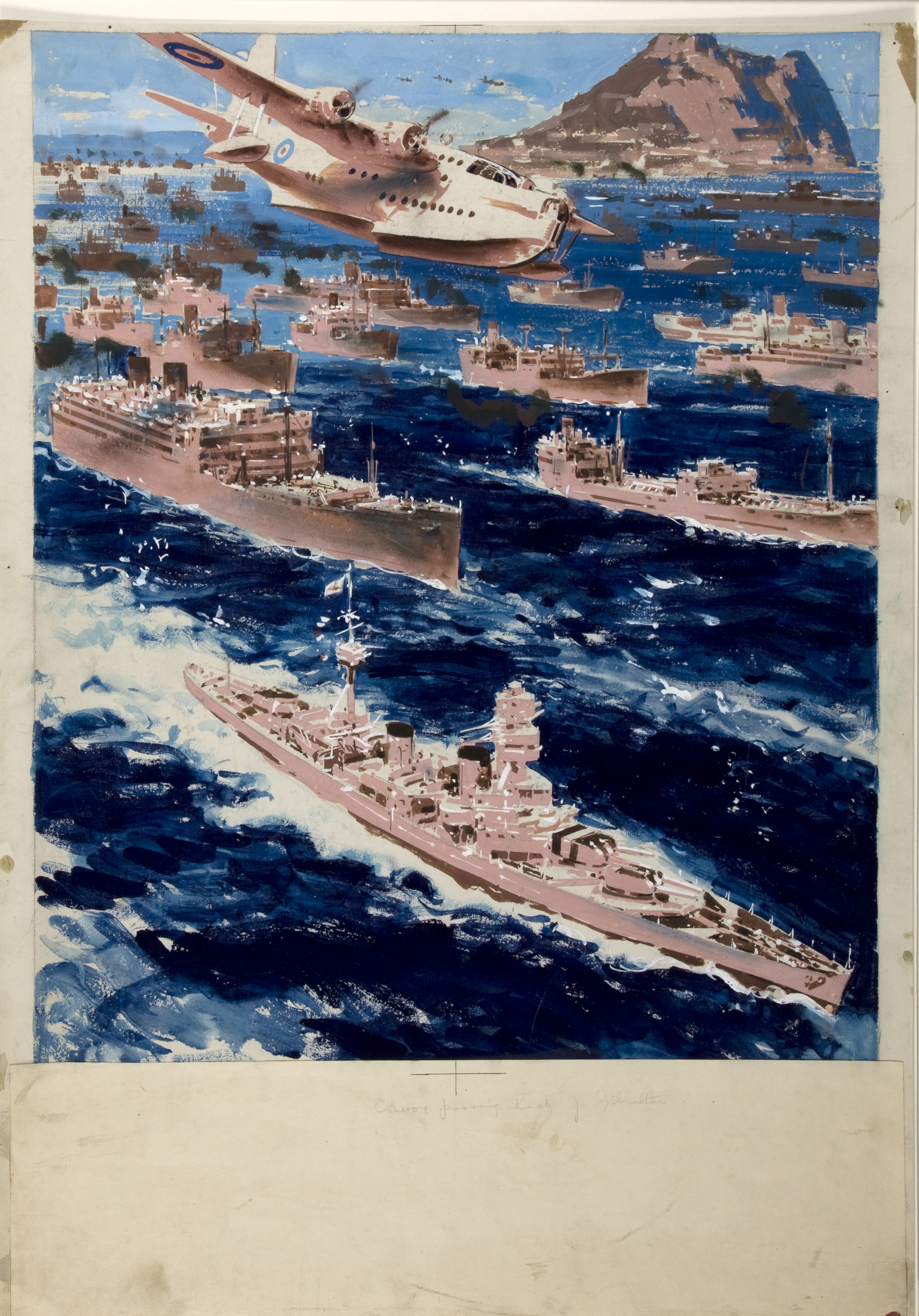 ملف:INF3-146 War Effort Convoy passing Gibraltar.jpg