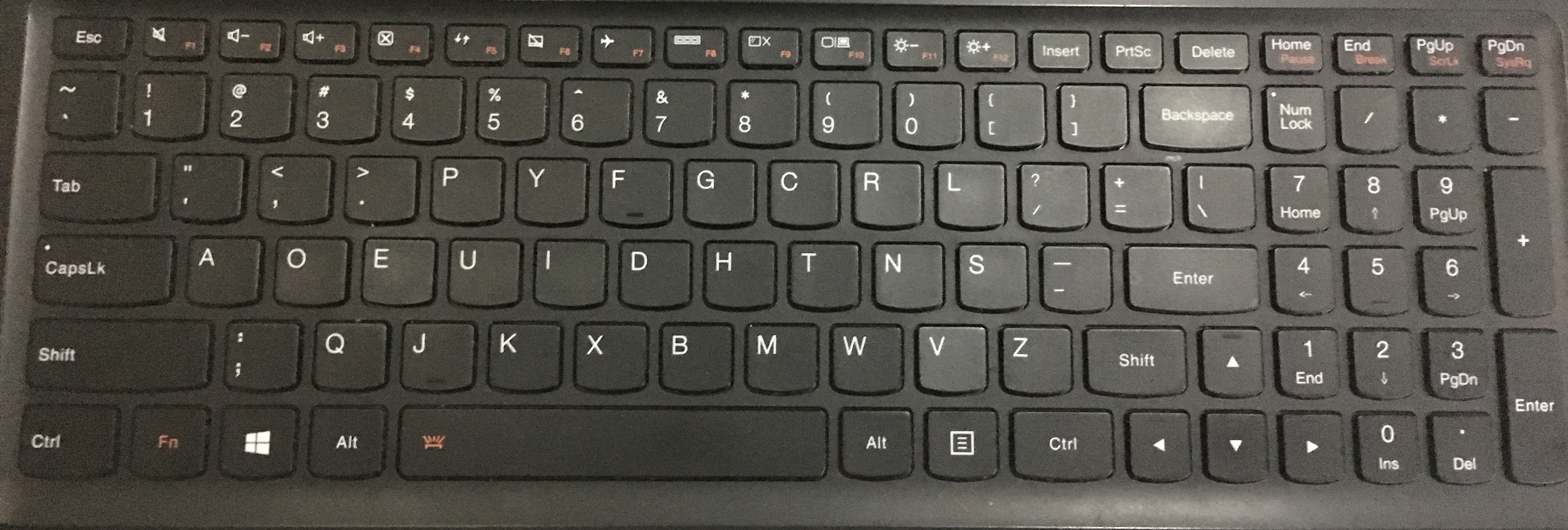 DVORAK Simplified keyboard, manually done on Lenovo Ideapad 700.
