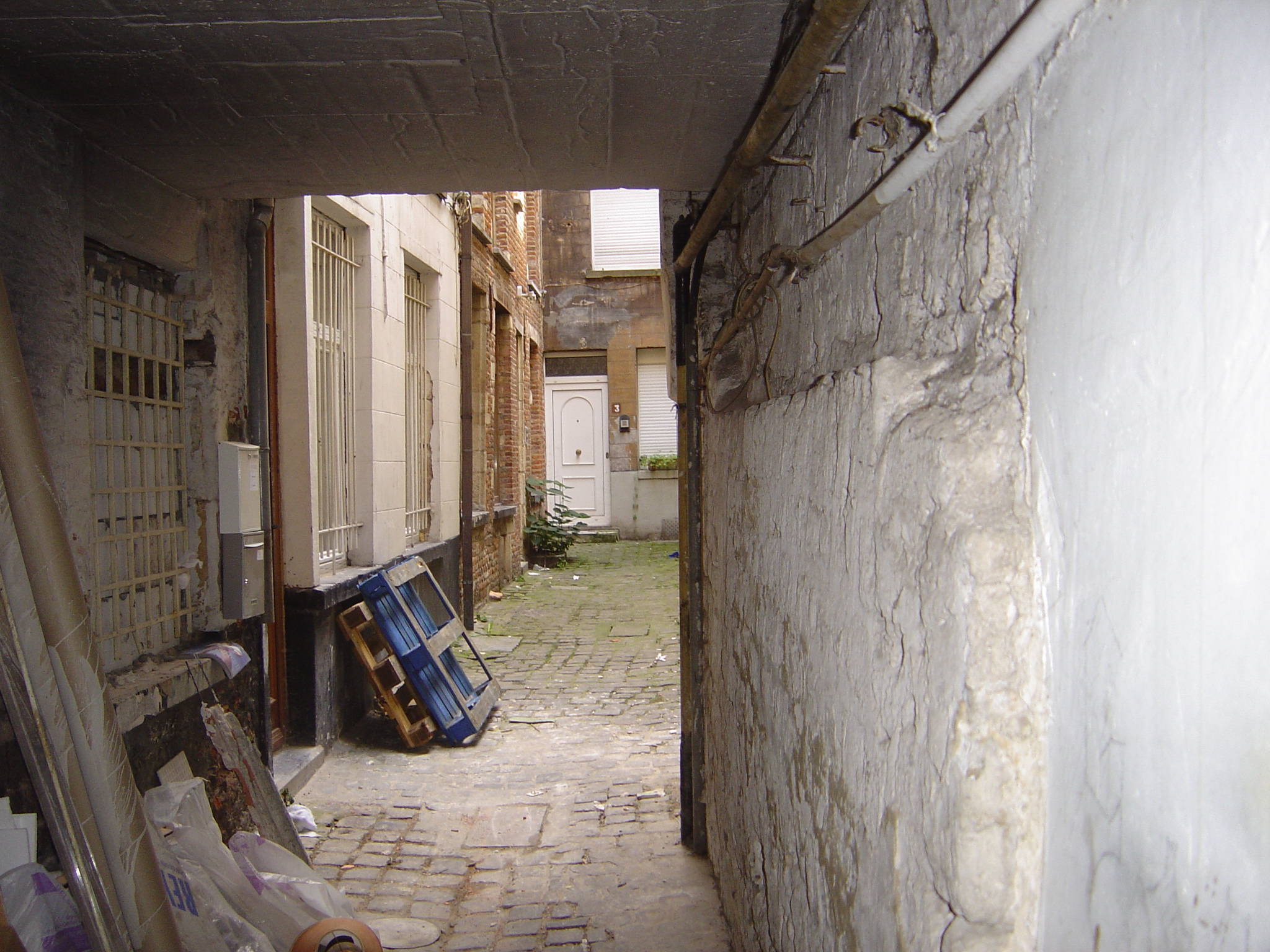 Français : La ruelle du Dragon à Bruxelles, actuellement impasse de la Poupée, débouchant rue du Marché aux Fromages 19. |