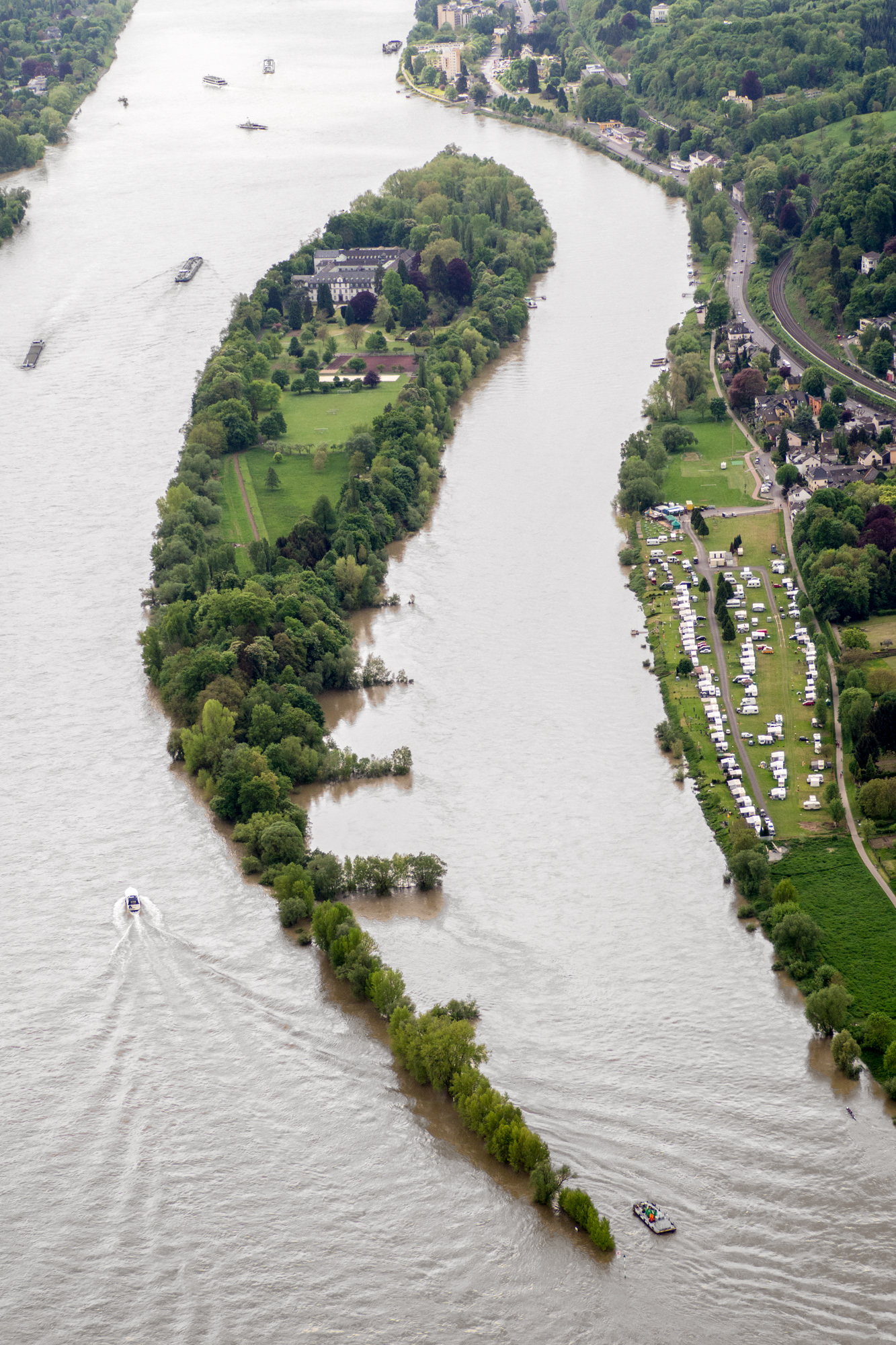 Deutsch: Luftbild: Insel Nonnenwerth im Rhein |