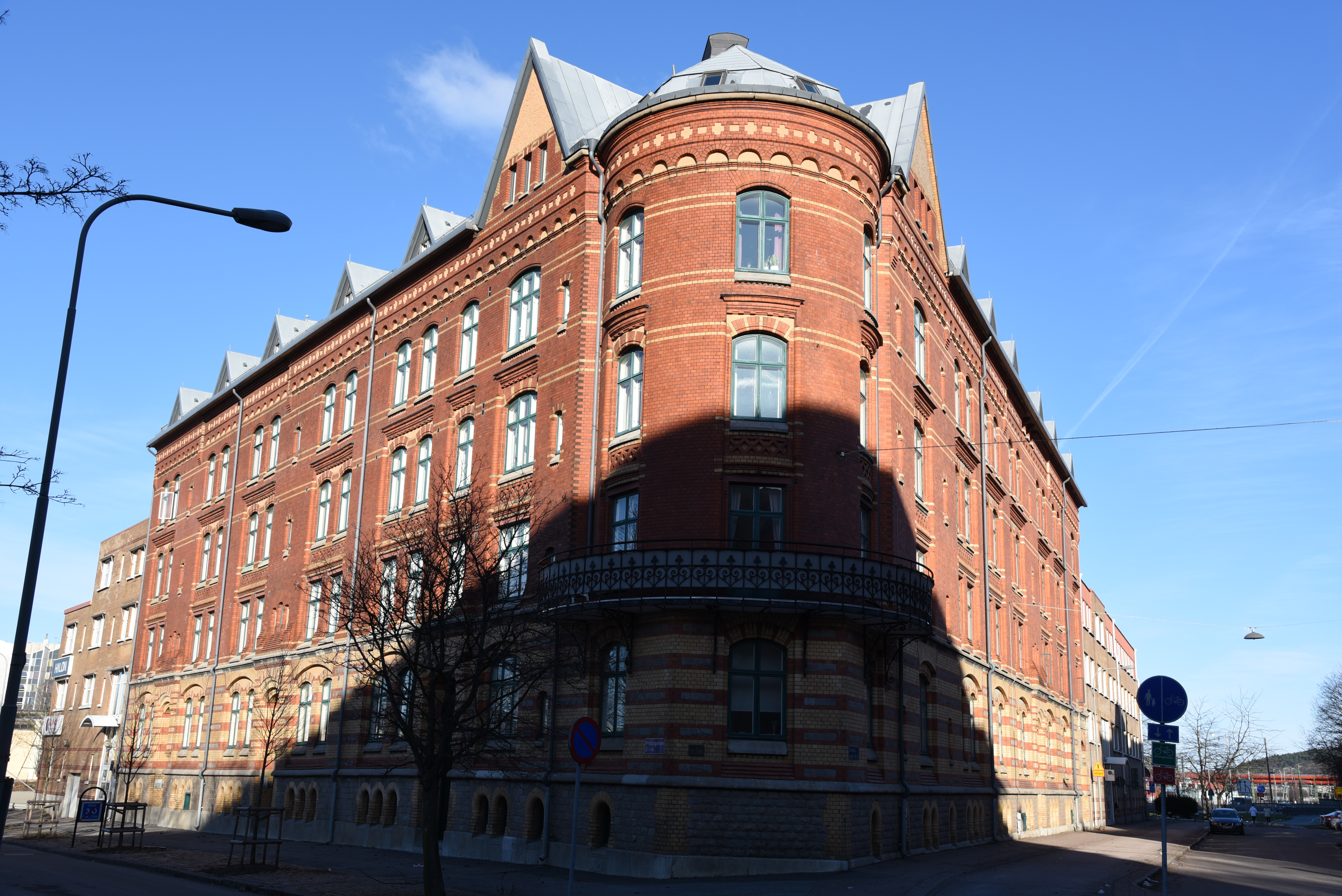 Svenska: Järnvägsmannahuset hörnet Olskroksgatan 28/Prästgatan 4 i stadsdelen Olskroken i Göteborg. Huset uppfört 1899, ritat av Hans Hedlund. |