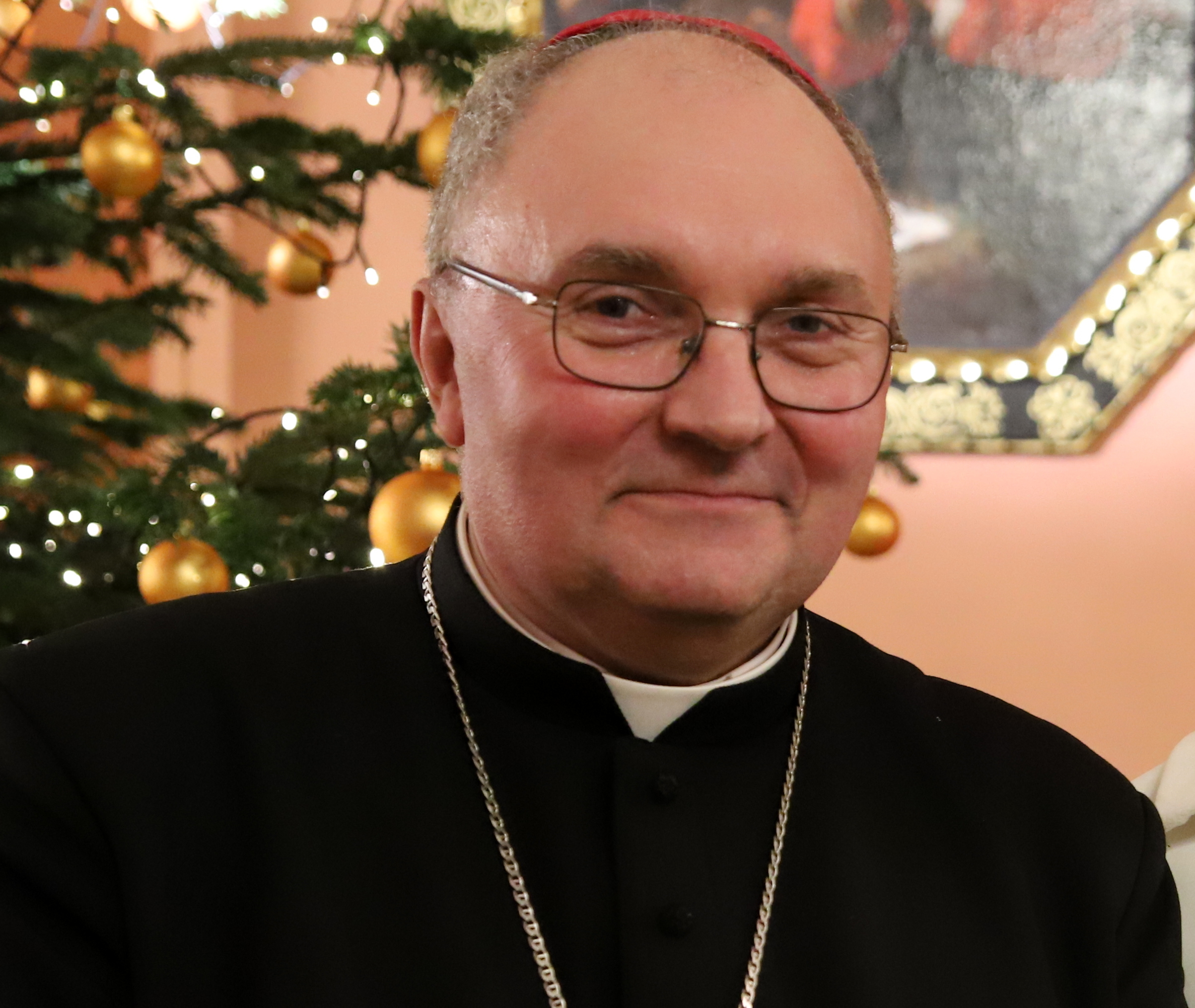 Polski: Bp Janusz Mastalski podczas spotkania opłatkowego Bożogrobców |