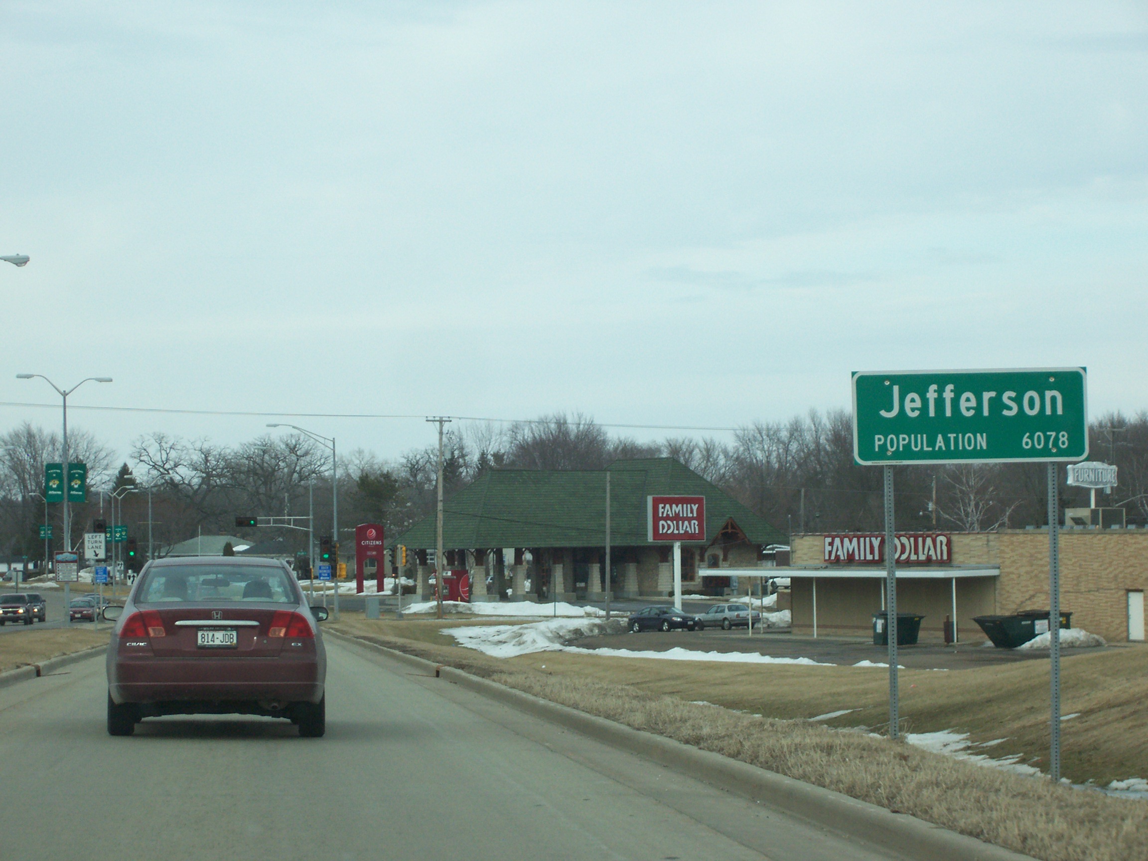 | Description | The population sign for w:Jefferson, Wisconsin, USA in w:Jefferson County, Wisconsin. |