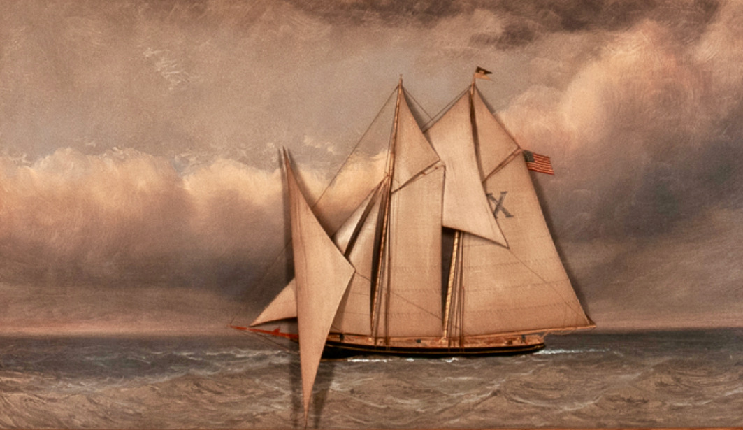 English: Silk and paint on canvas of the Pilot Boat Jesse Carll, No. 10., by en:w:Thomas Willis, ca. 1850-1925. |
