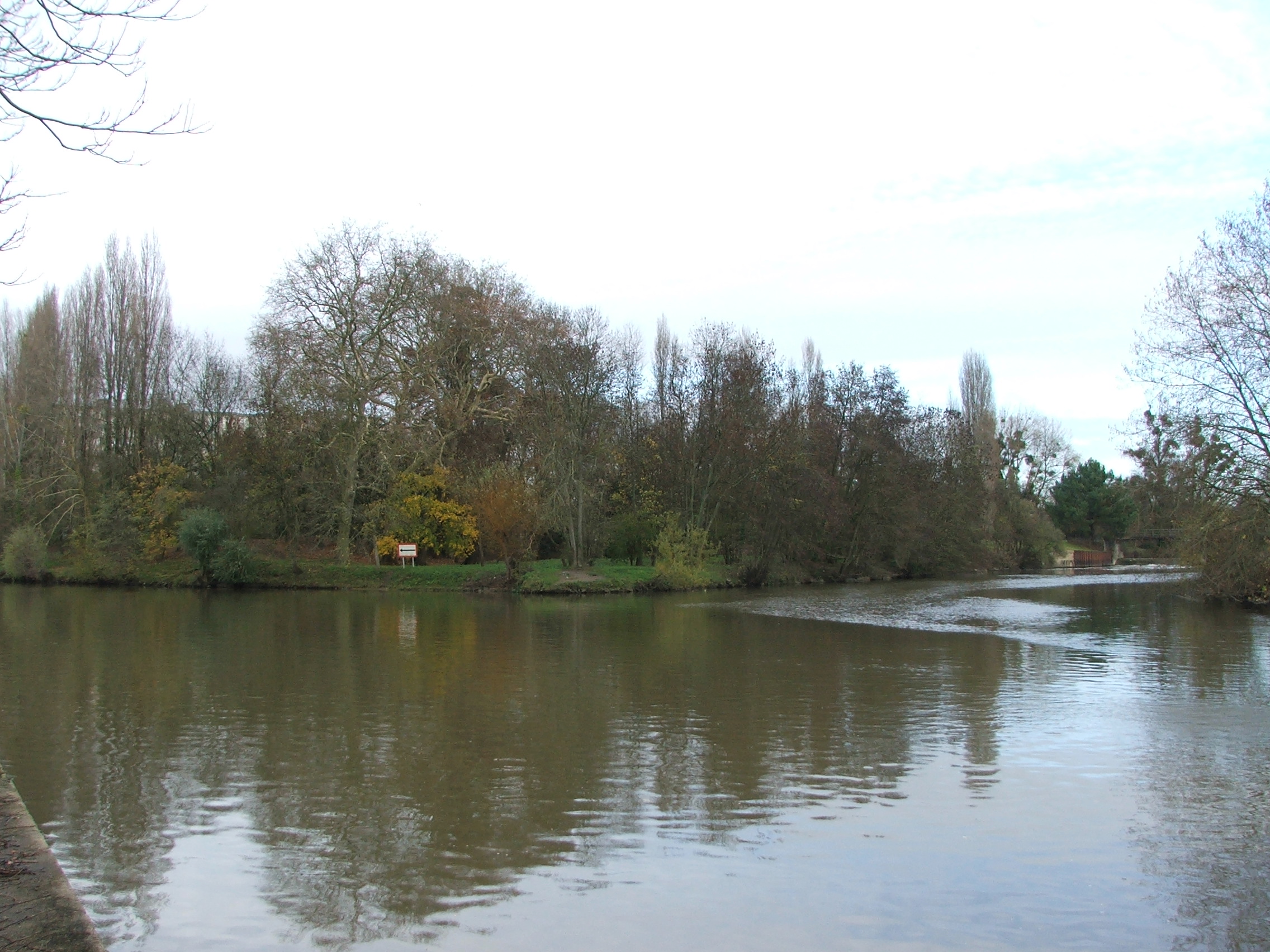Français : Confluence de l'Huisne (à droite) dans la Sarthe (à gauche). |