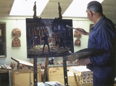 Svenska: Johan Ahlbäck i sin ateljé omkring 1960 |