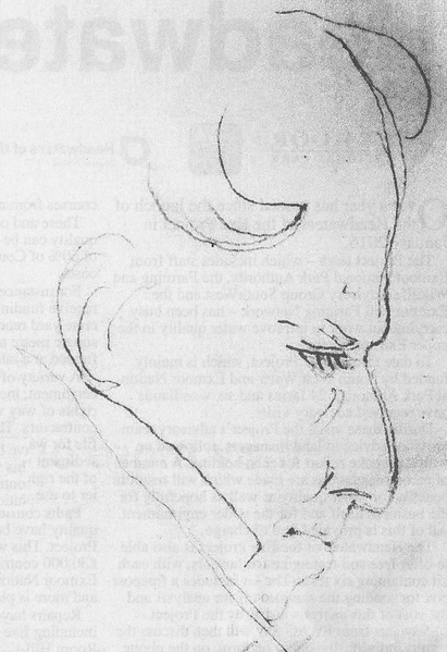 English: Profile sketch portrait of John Knight (d.1850), who pioneered the agricultural development of the former royal forest of Exmoor, Devon and Somerset, England. Scrapbook of Isabella Knight, daughter of John Knight, Edward Lear Collection, British Museum Prints and Drawings Collection |