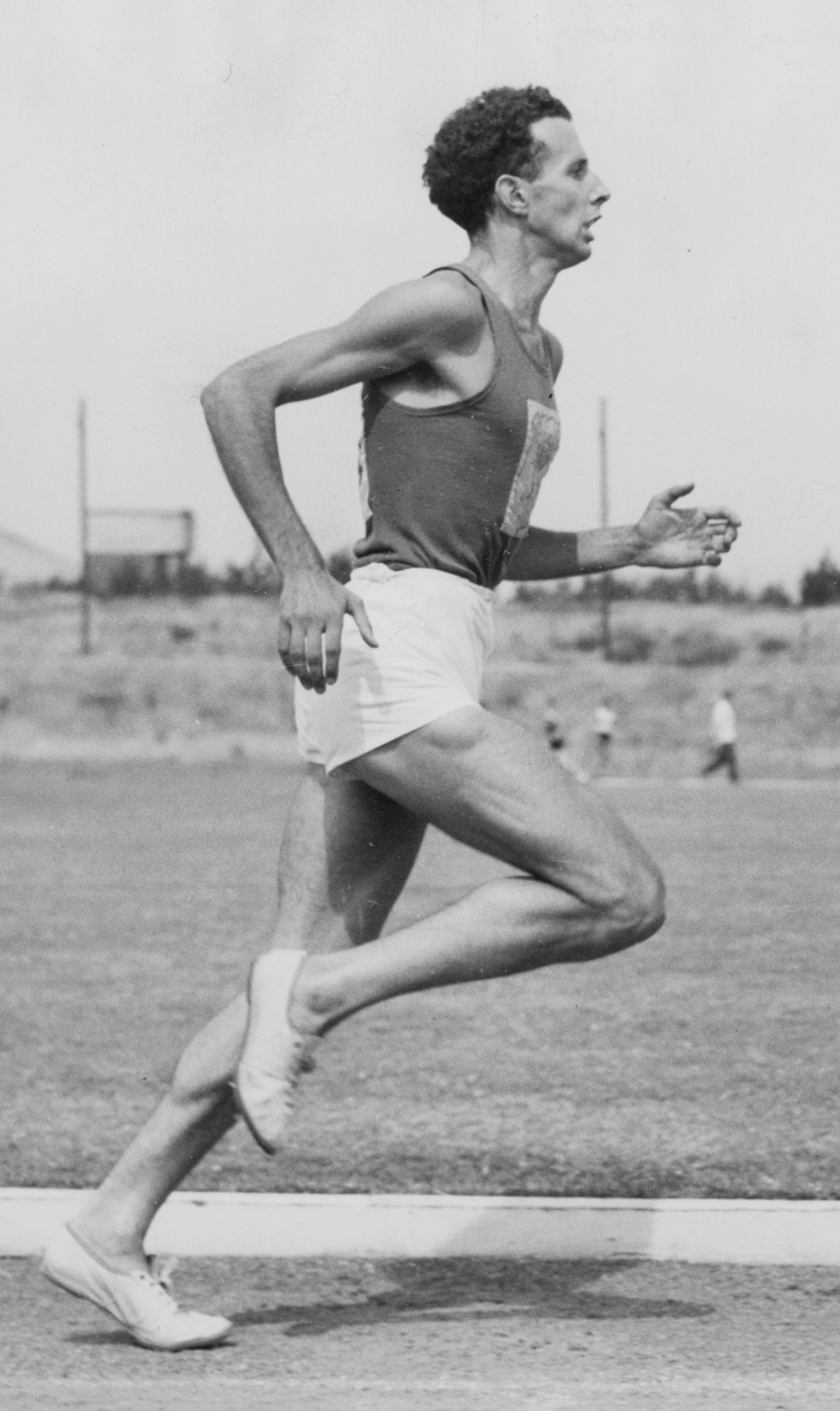 | Description | John Landy (Geelong Guild), whole-length, right profile, running, approaching the finishing post at the Olympic Park (Victoria) |