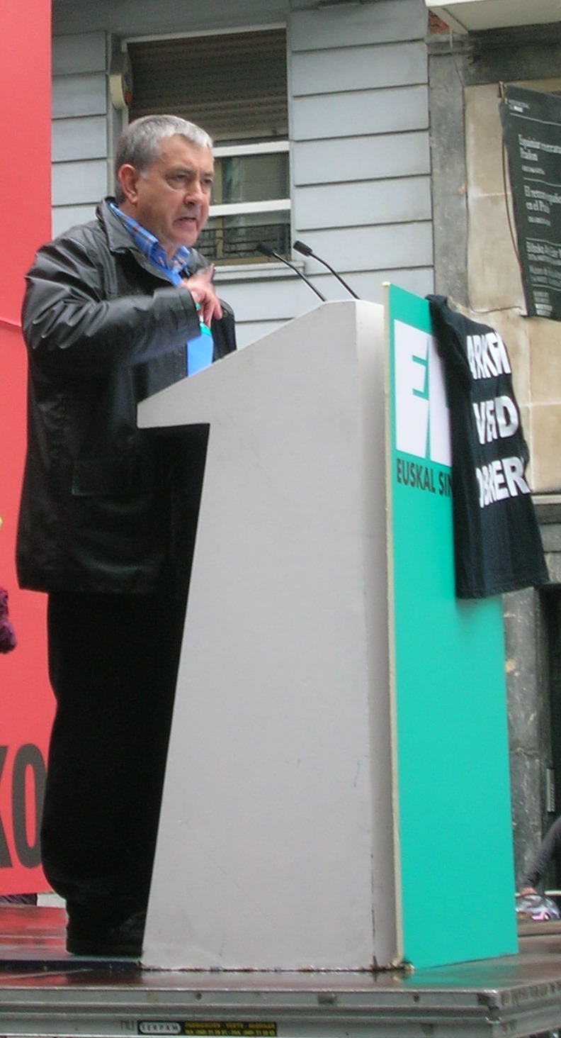 Español: Jose Elorrieta (entonces Secretario general y responsable de relaciones intersindicales del sindicato Eusko Langileen Alkartasuna-Solidaridad de Trabajadores Vascos) en un mitin del uno de mayo, en la Gran Vía de Bilbao