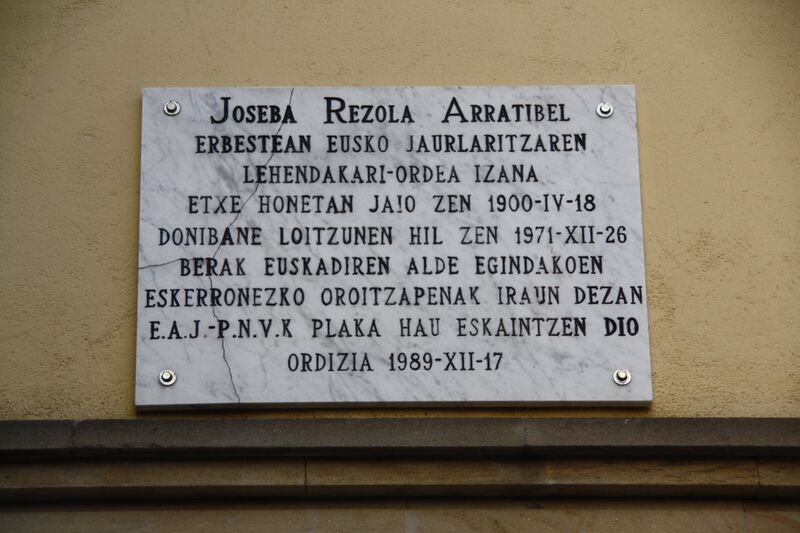 Euskara: Joseba Rezolaren oroigarria Ordiziako bere jaiotetxean. |