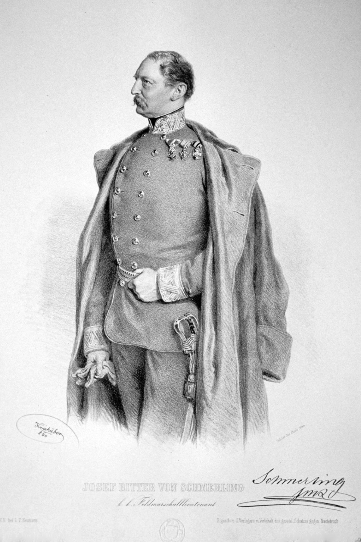 Deutsch: Josef von Schmerling (1806-1884), k. k. Feldzeugmeister, Lithographie von Josef Kriehuber , 1860 |