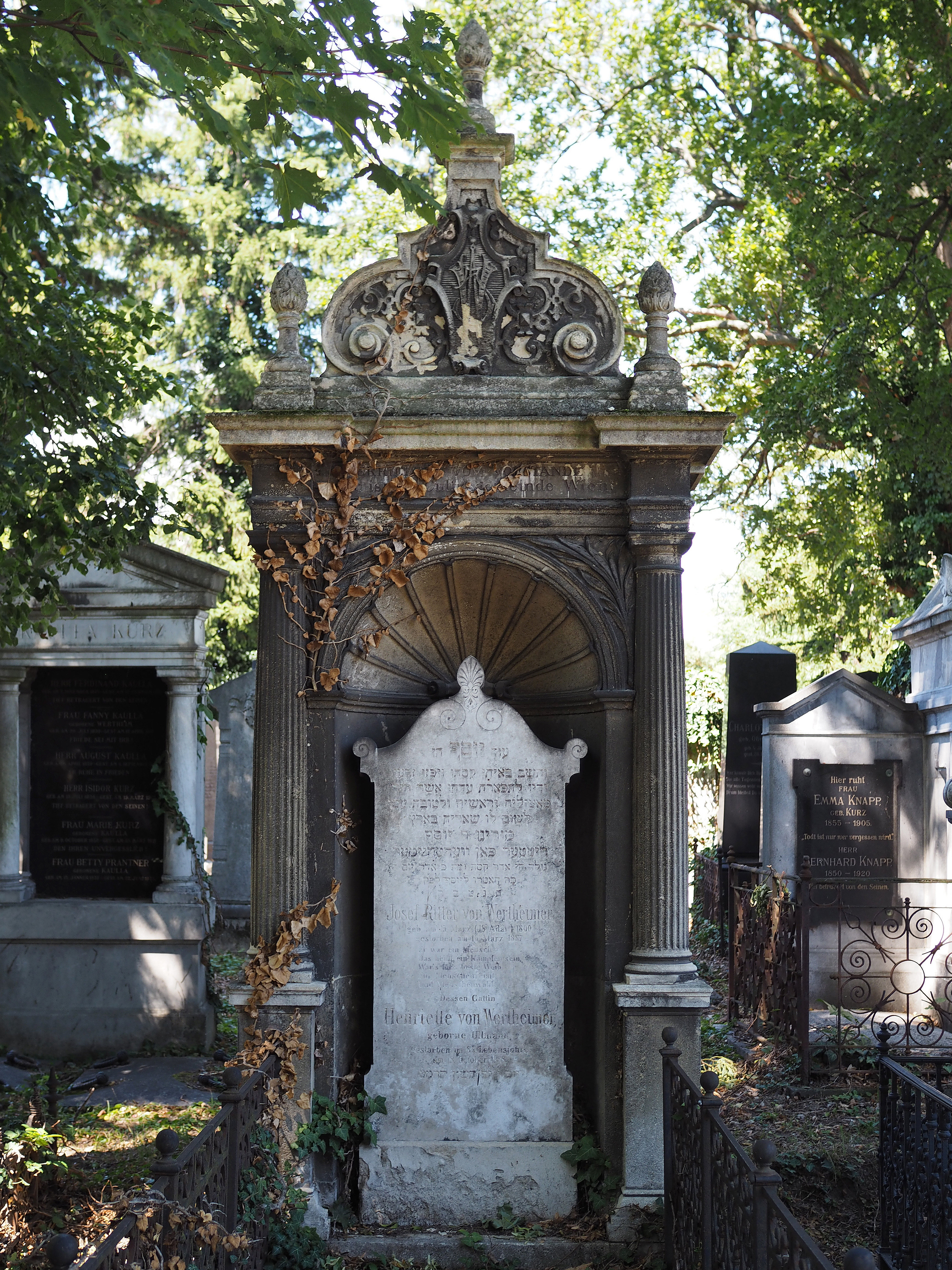 English: Grave of Josef von Wertheimer (1800–1887), philanthropist, writer and president of the Jewish Community Vienna, and his wife Henriette (née Ullmann; 1807–1888) in the old Jewish part of the Vienna Central Cemetery (6/1/3)