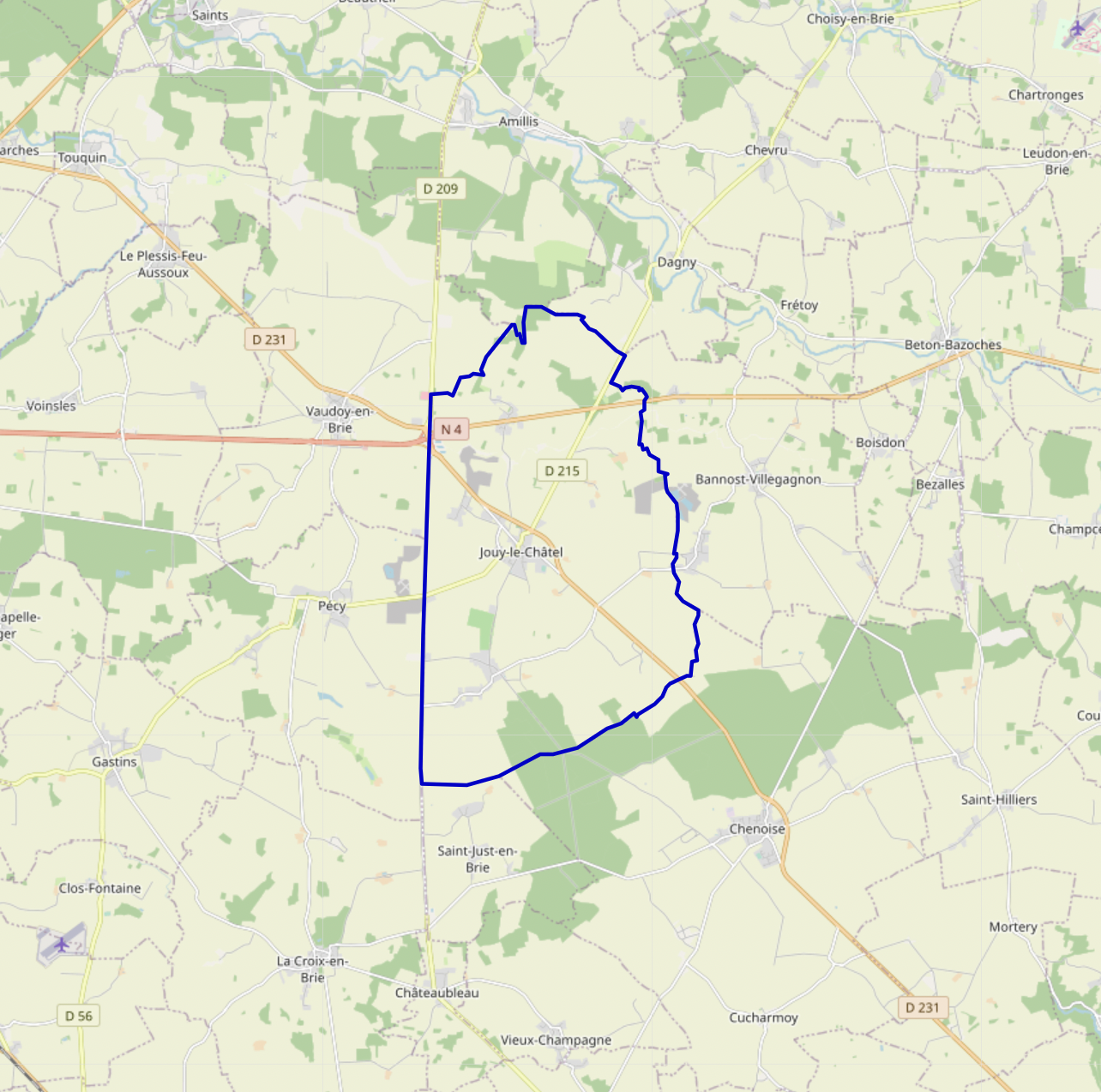 Français : Carte OSM de Jouy-le-Châtel, Seine-et-Marne |