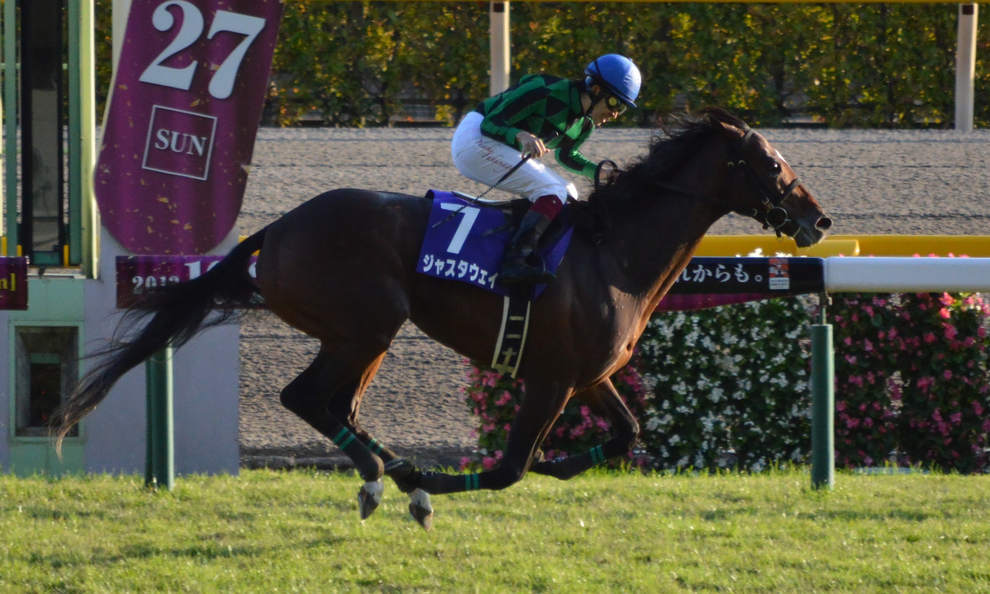 (Japanese) English: Japanese race horse Just A Way at Tokyo racecourse.