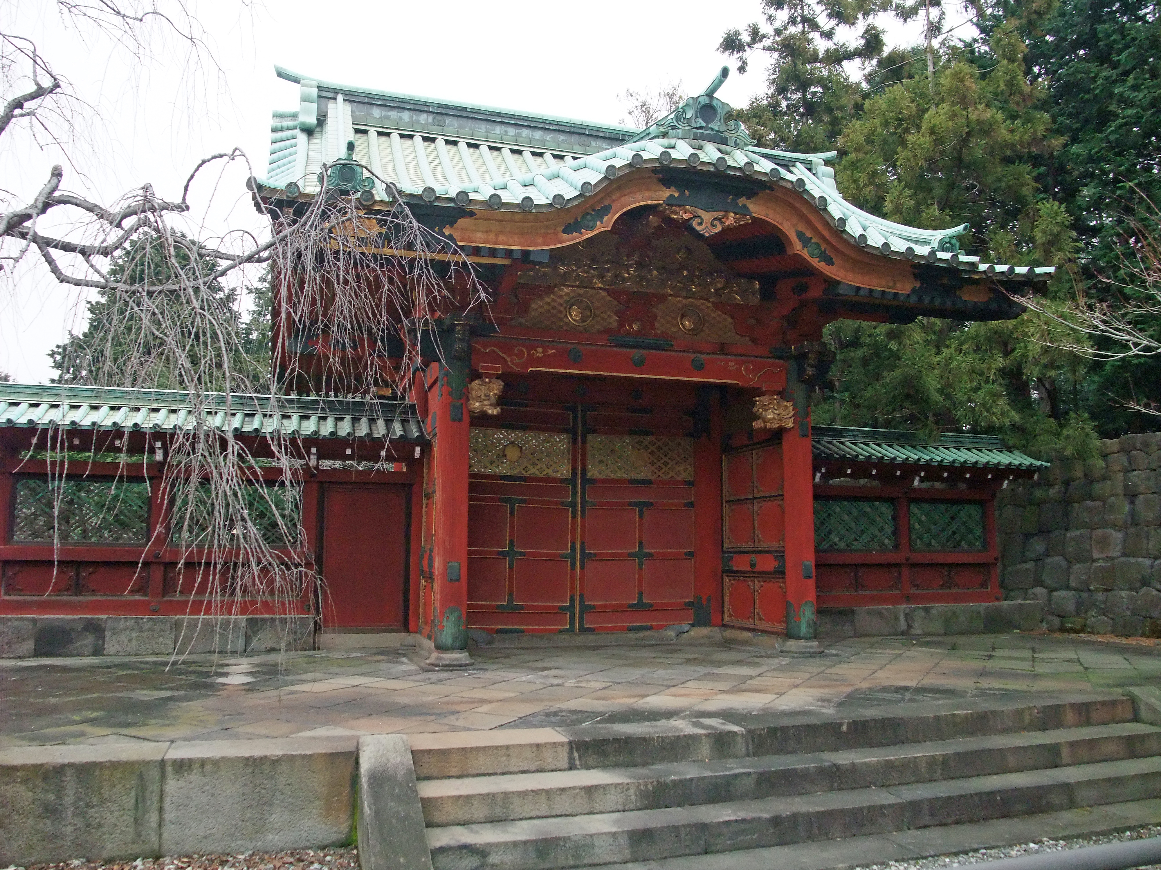 English: Chokugaku-mon (Gate with an imperial inscription), Mausoleum of Joken'in (Tokugawa Tsunayoshi) (Japan's national important cultural property) Kan'ei-ji temple, Taito-ku, Tokyo, Japan