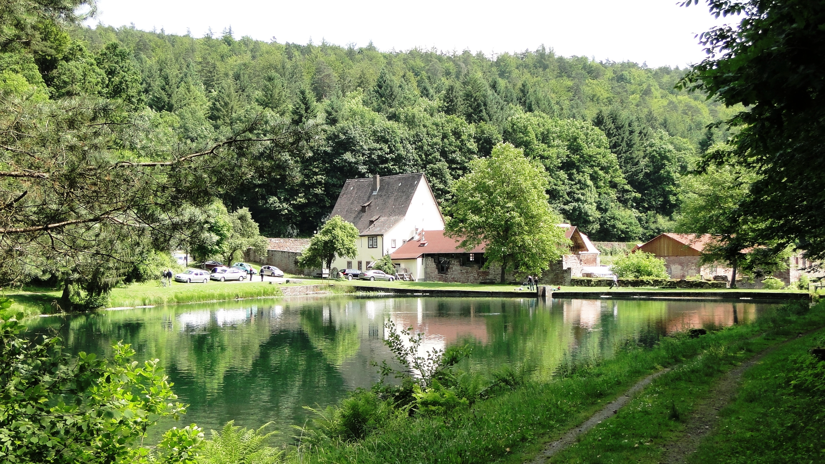 ملف:Kartause Grünau with fish pond.JPG