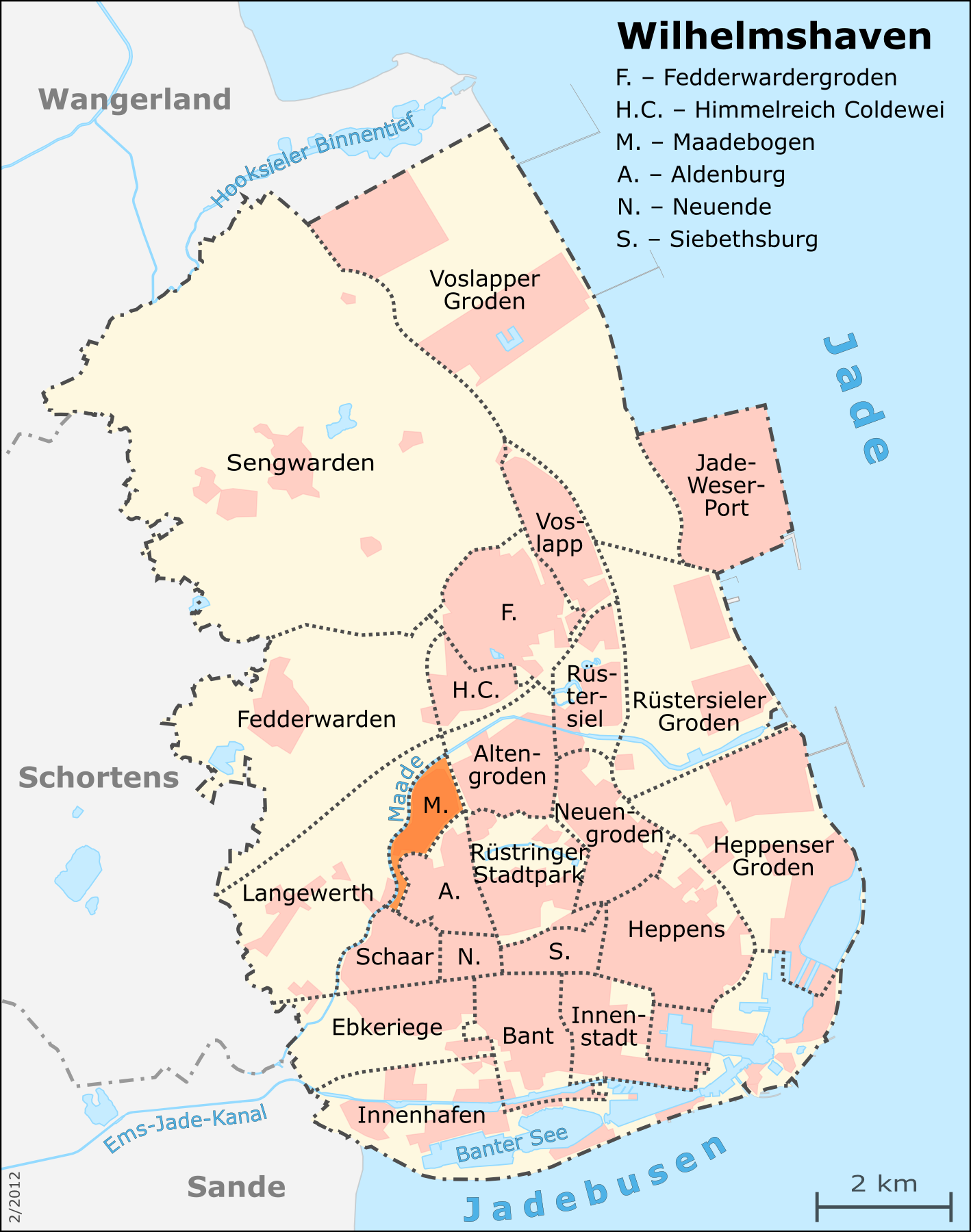 English: Map of Wilhelmshaven's city districts: Maadebogen Deutsch: Karte der Wilhelmshavener Stadtteile: Maadebogen