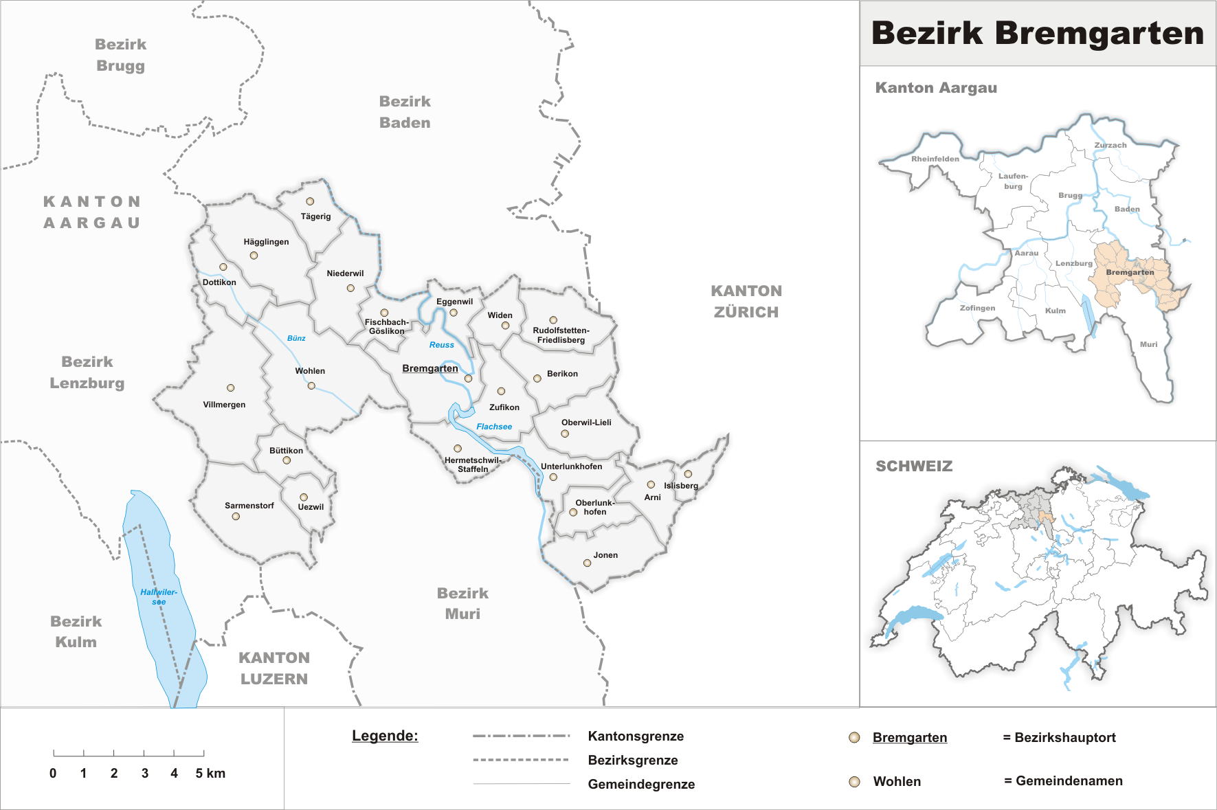 Deutsch: Gemeinden des Bezirks Bremgarten ab 2010 |