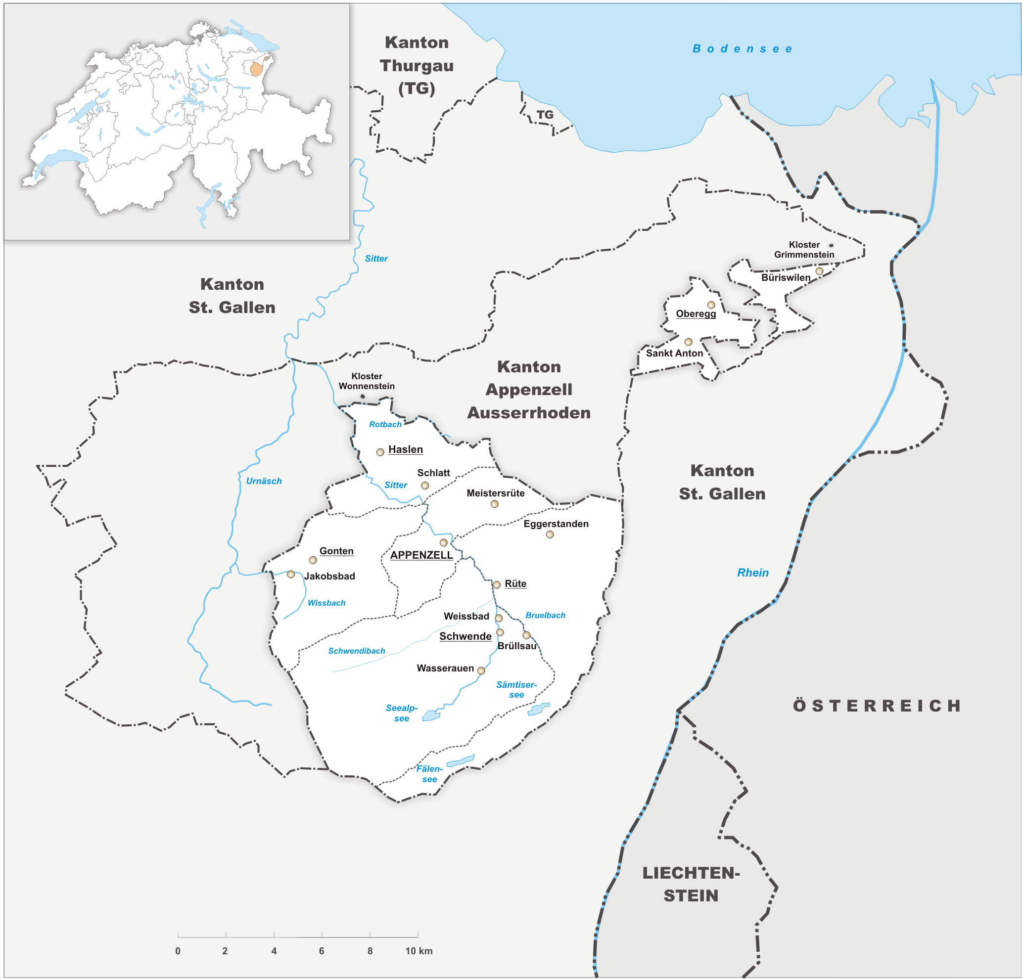 Deutsch: Karte des Kanton Appenzell Innerrhoden. |