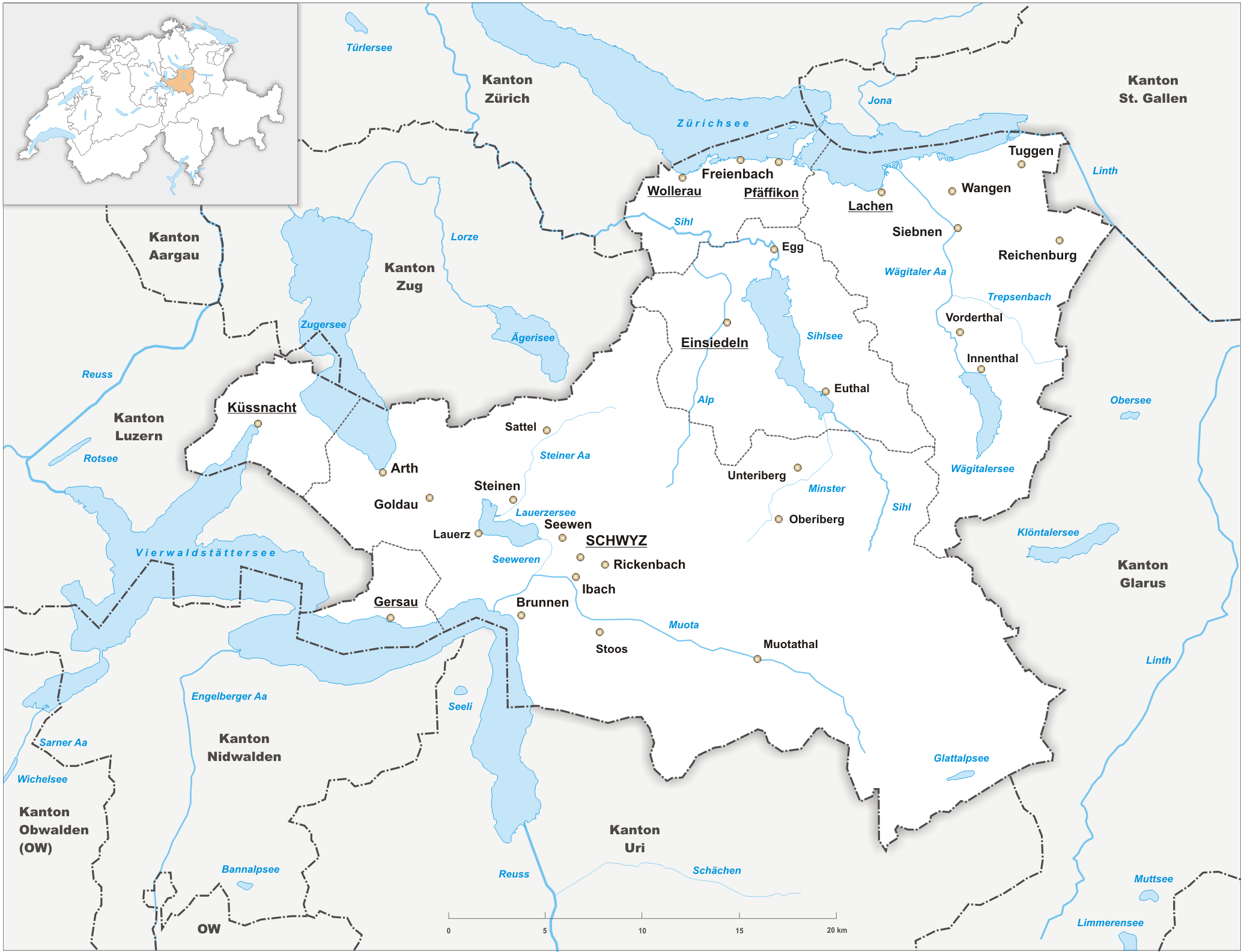 Deutsch: Karte des Kanton Schwyz. |