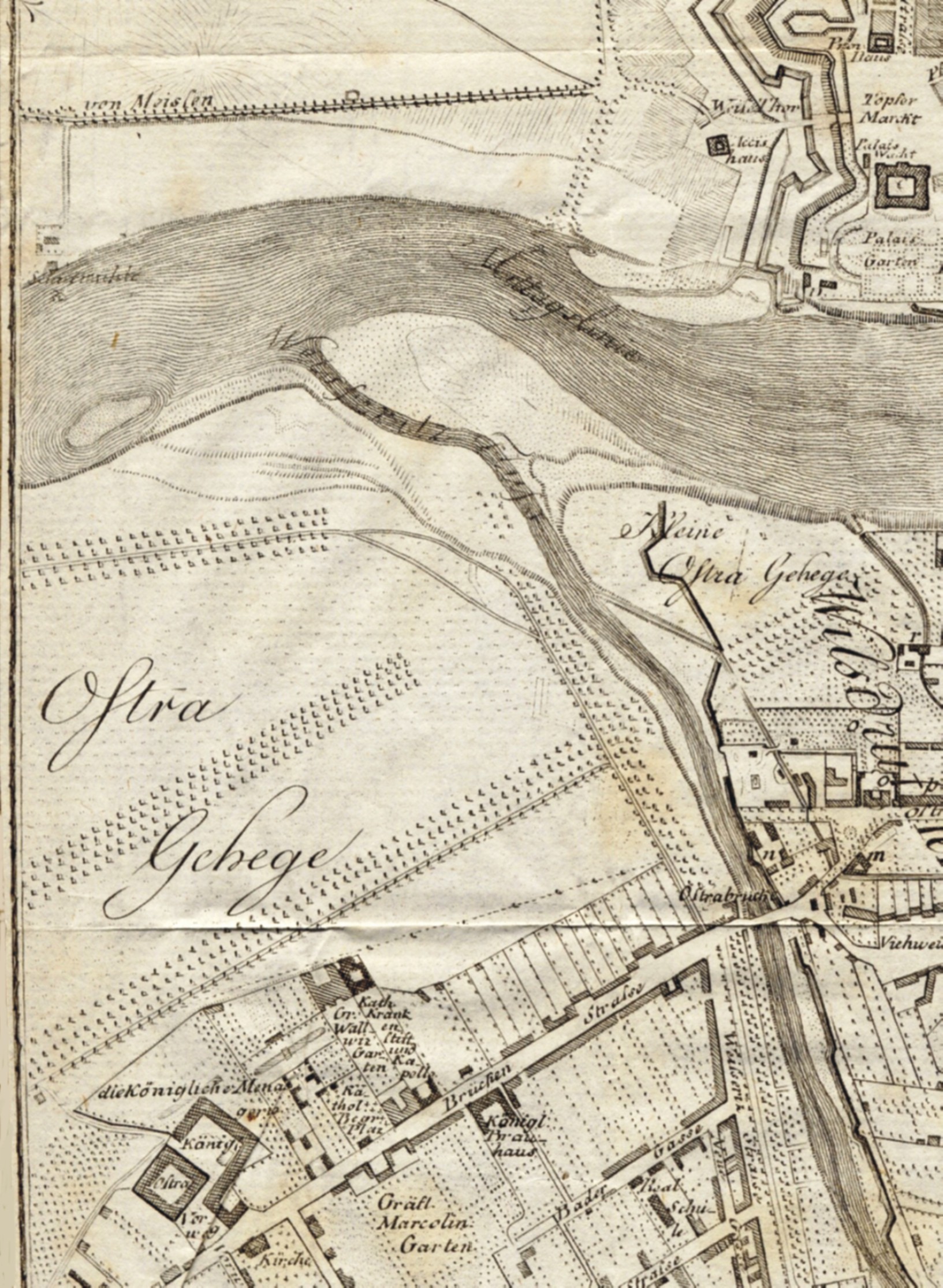 English: city map of Dresden (part of plan with Ostragehege), J. Georg Lehmann, delineated 1801, improved 1804, printed 1809