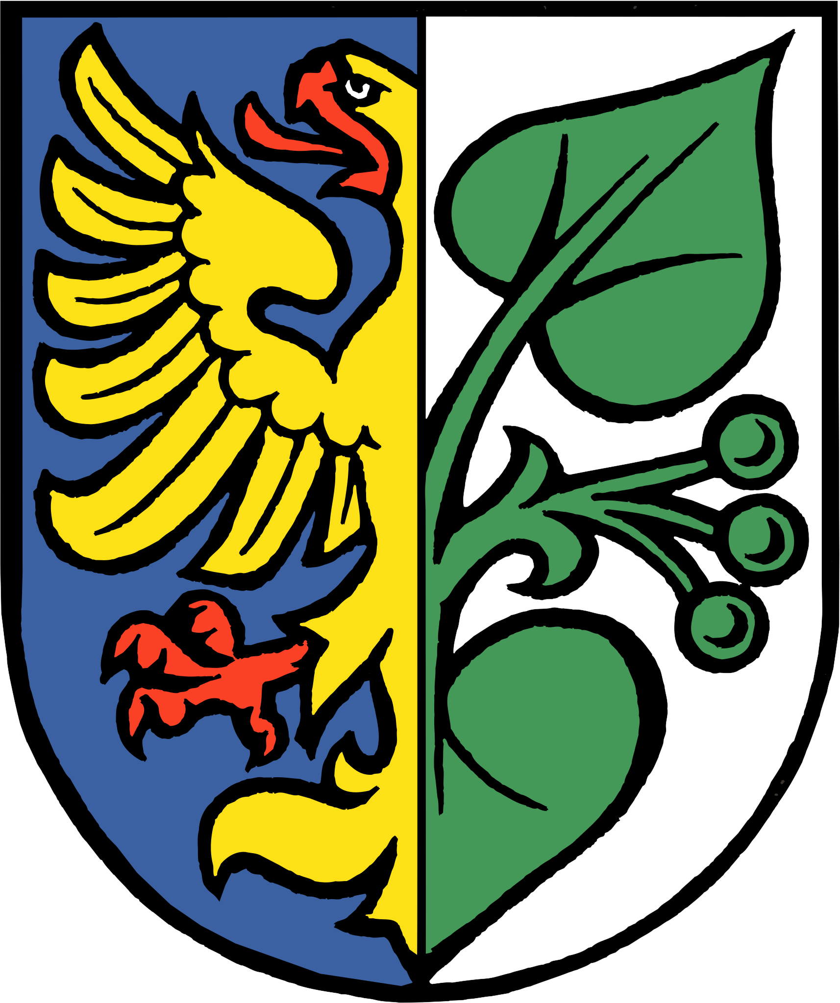 Shows eagle heraldically "dimidiated" with plant.