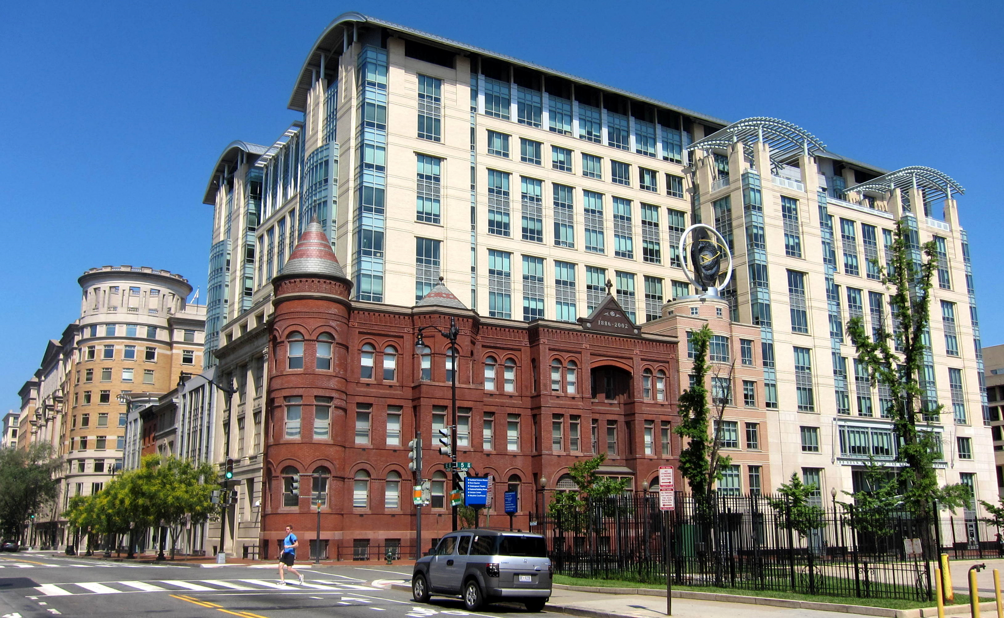 English: The Keck Center of the National Academies located at 500 5th Street, N.W., in the Judiciary Square neighborhood of Washington, D.C. Built in 2002 to the designs of architectural firm KCF-SHG, Inc., the 11-story, postmodern building houses the Marian Koshland Science Museum and United States National Academy of Sciences headquarters. |