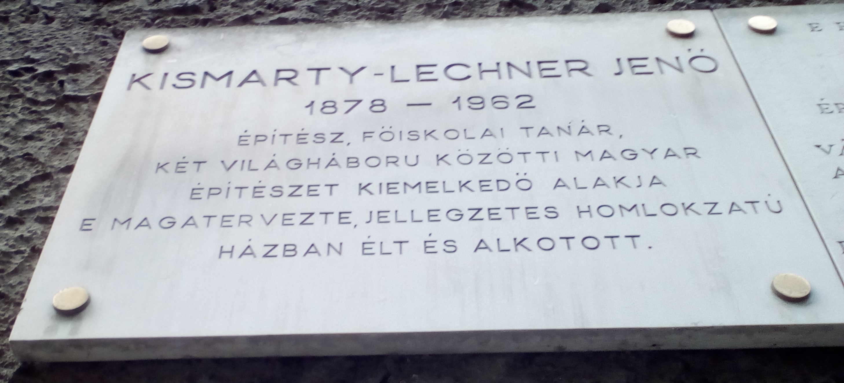 ملف:Kismarty-Lechner Jenő emléktáblája, Budapest, XI., Mészöly utca 4..jpg