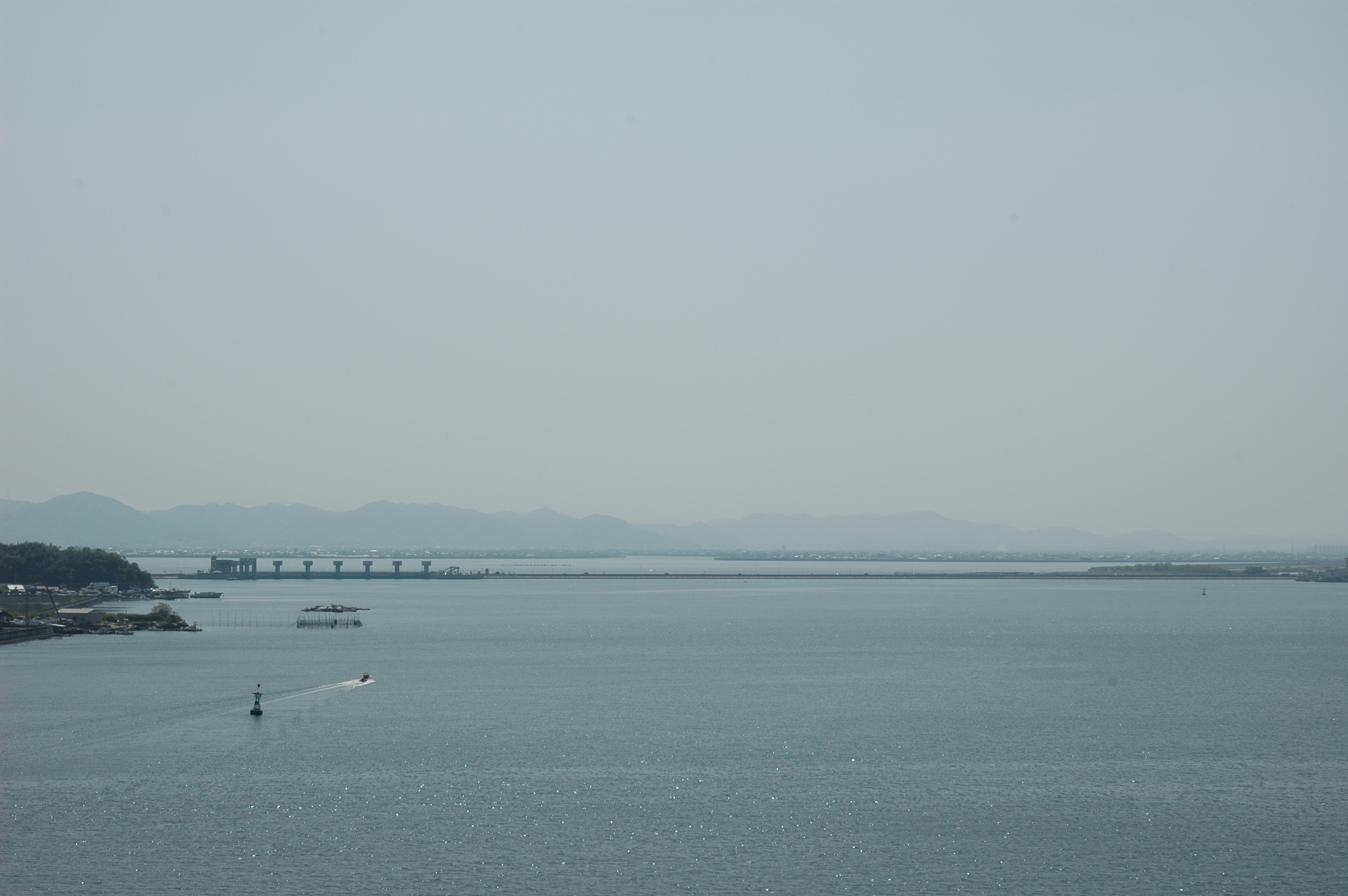 English: Kojima lake(interior side) and Kojima bay(this side) from Kojimawan bridge