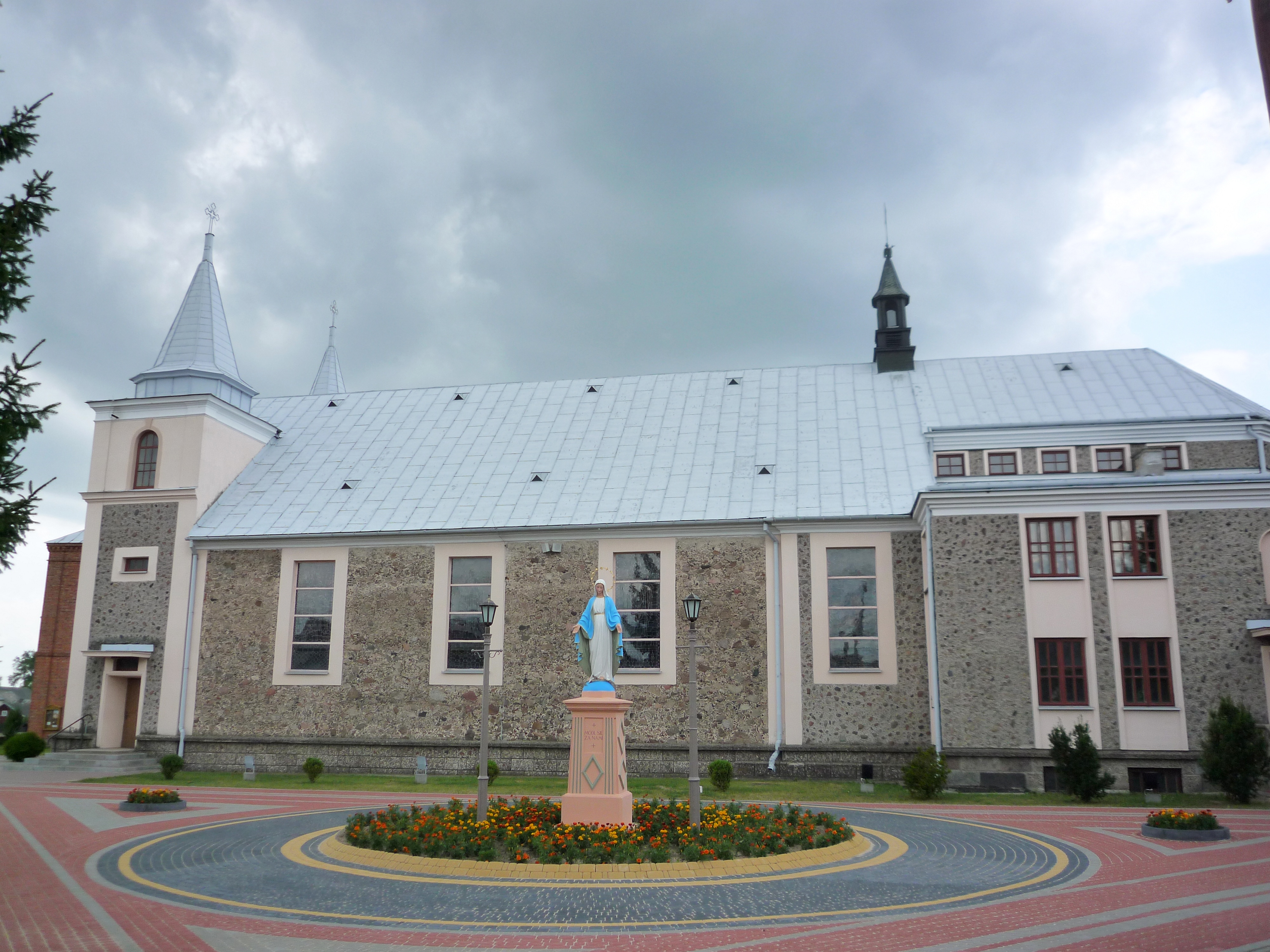 English: Kołaki Kościelne - the square and the parochial church