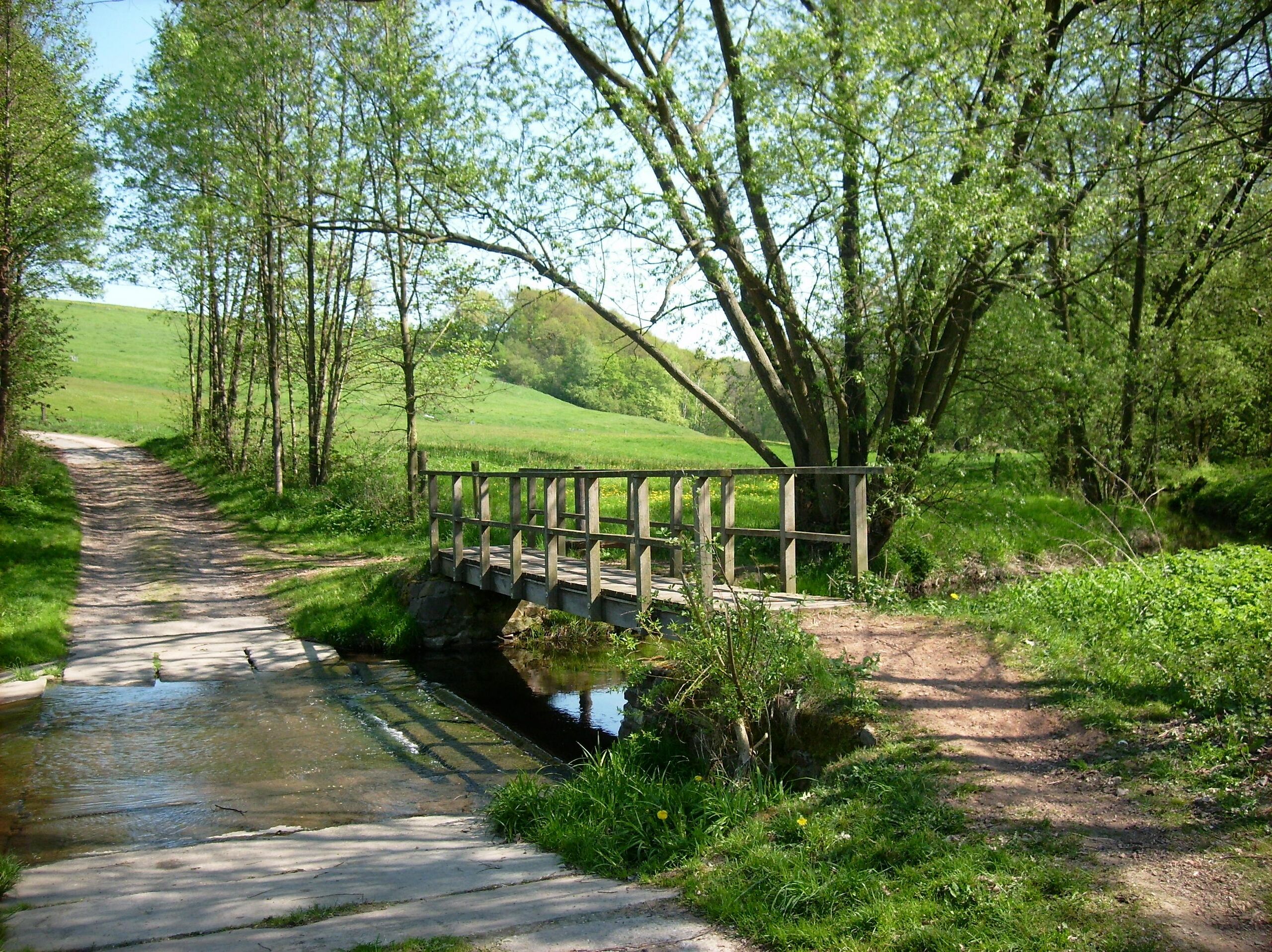 English: Ford and bridge across the Auenbach stream near Koltzschen (Colditz, Leipzig district, Saxony)