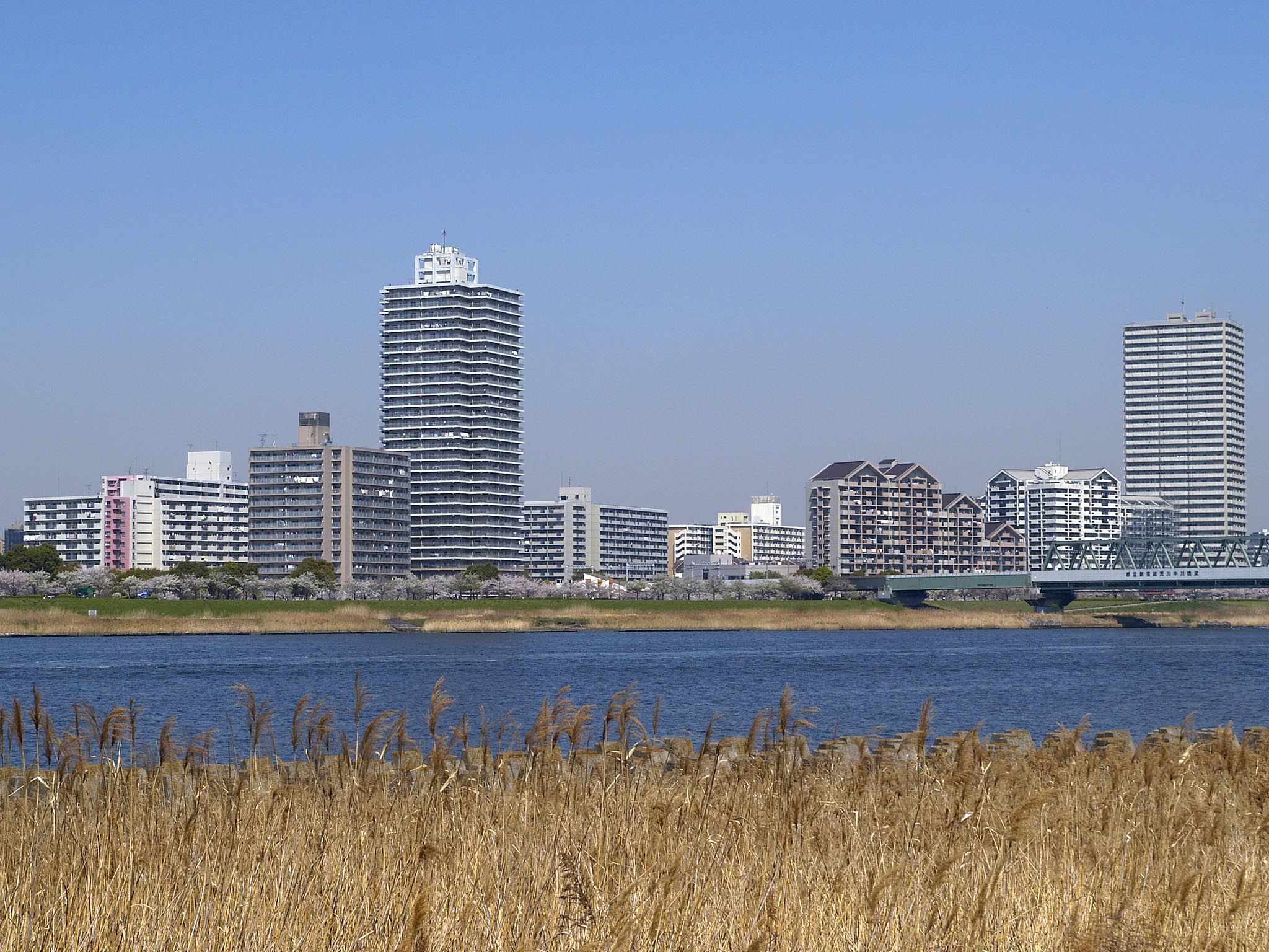 English: Komatsugawa 1-Chome, Edogawa, Tokyo, view from levee deviding Arakawa River and Nakagawa River.