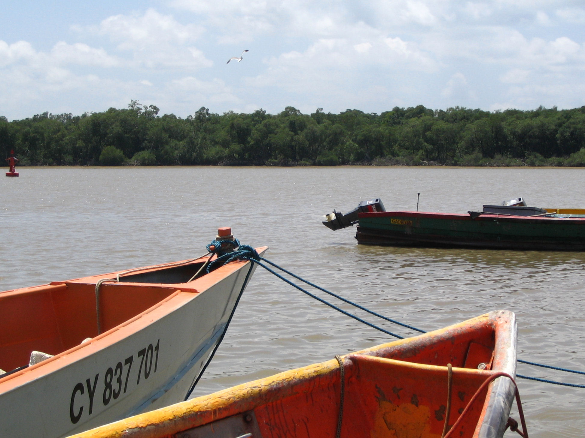 ملف:Kourou river port boats seagull jungle.jpg
