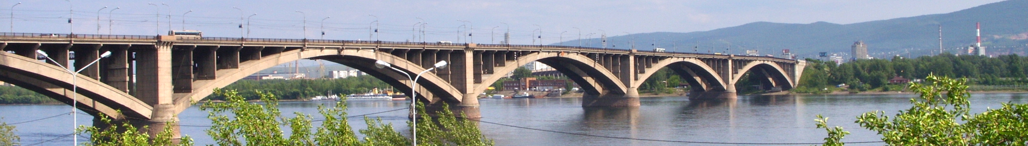 Description Kommunalny Bridge, Krasnoyarsk, Russia. Cropped to be used as a Wikivoyage banner.