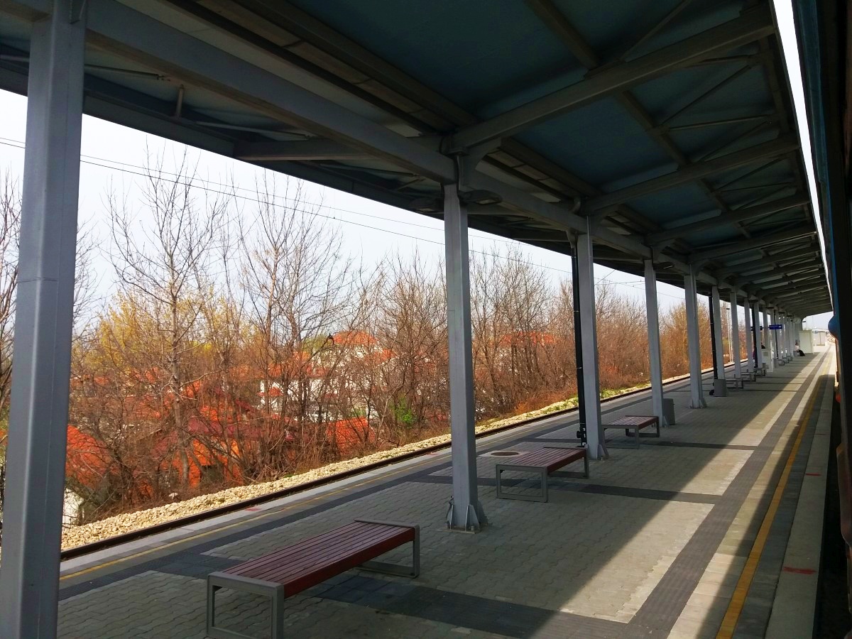 English: View of the only platform of Krnjača most railway station.