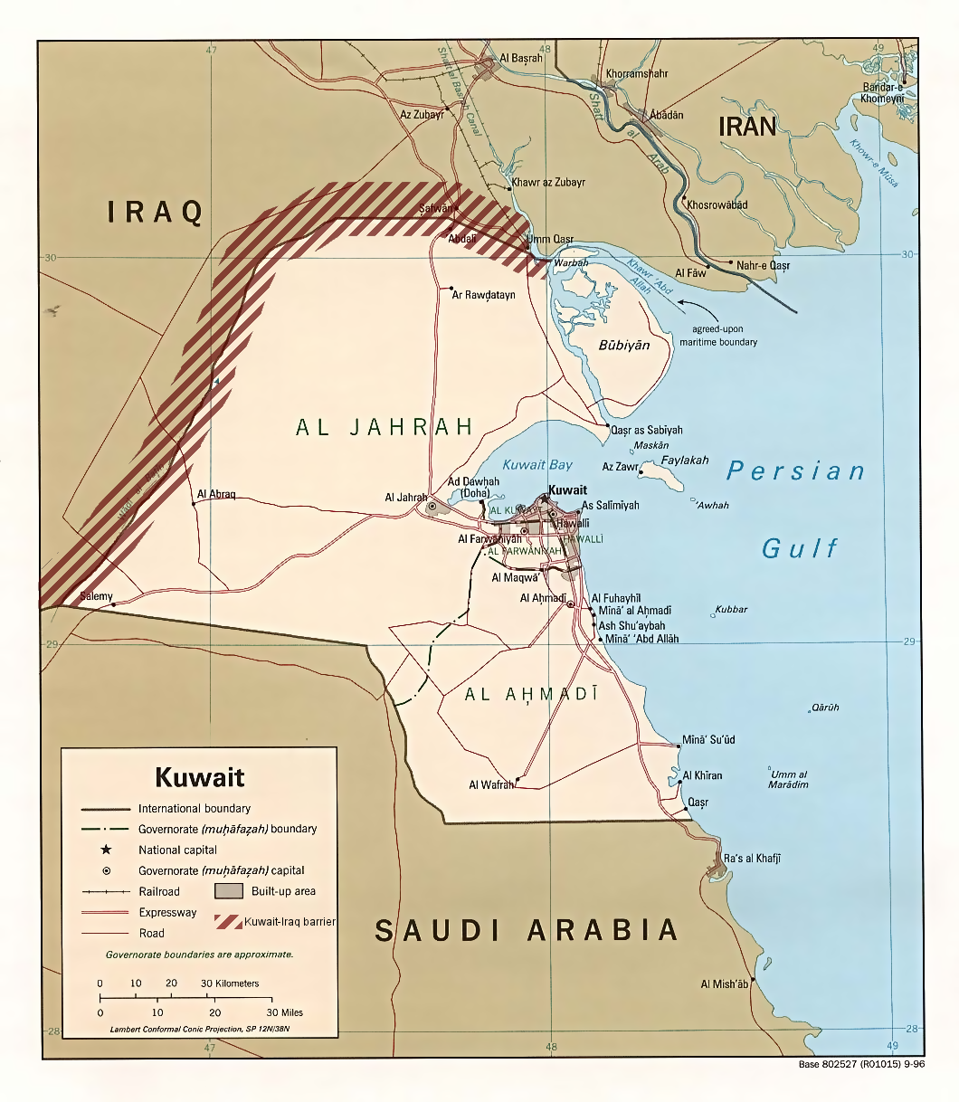 Source: Courtesy of the University of Texas Libraries, The University of Texas at Austin for the map originally found at : http://www.lib.utexas.edu/maps/middle_east_and_asia/kuwait_pol96.jpg