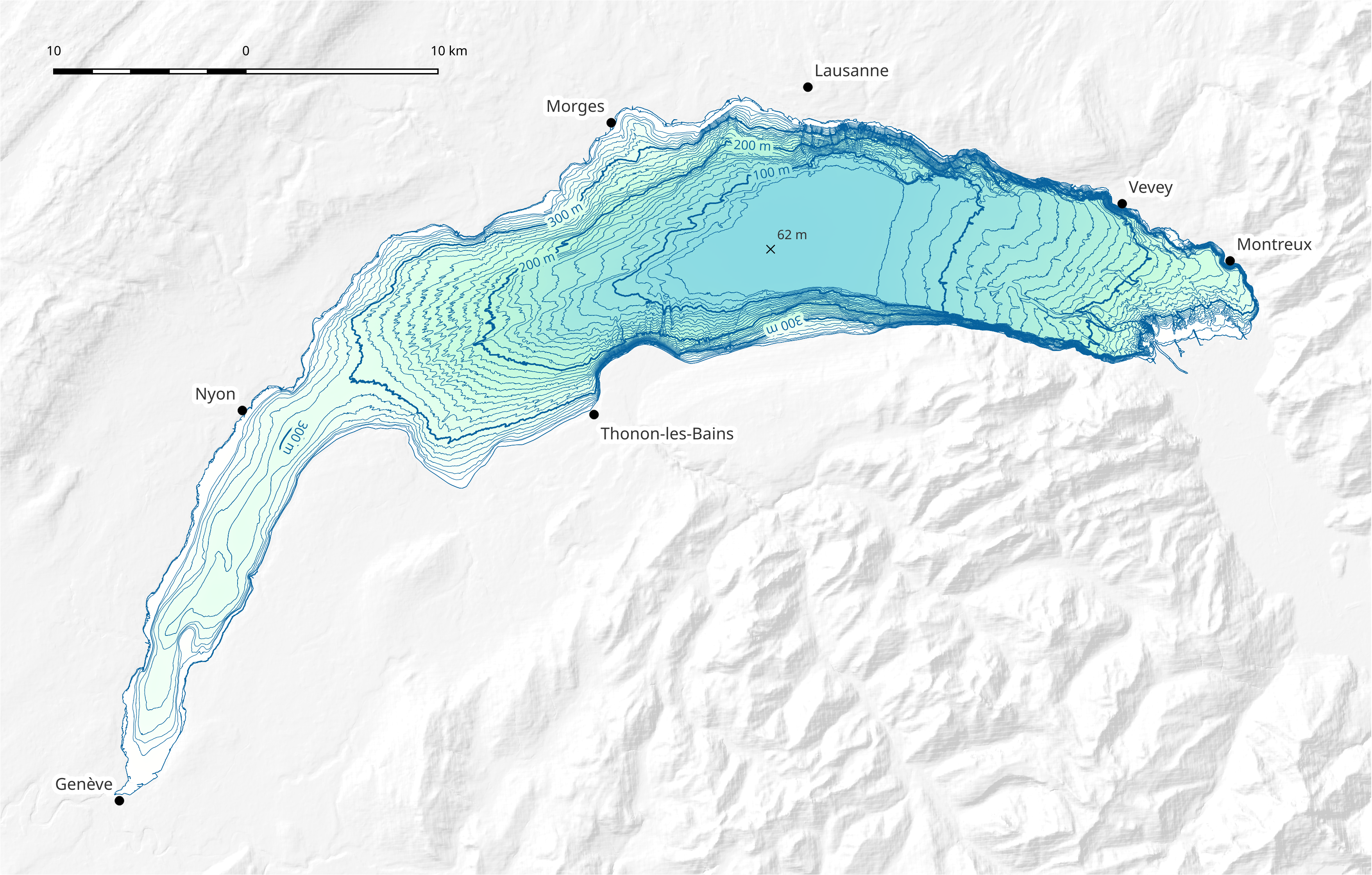 Français : Carte bathymétrique du Léman |