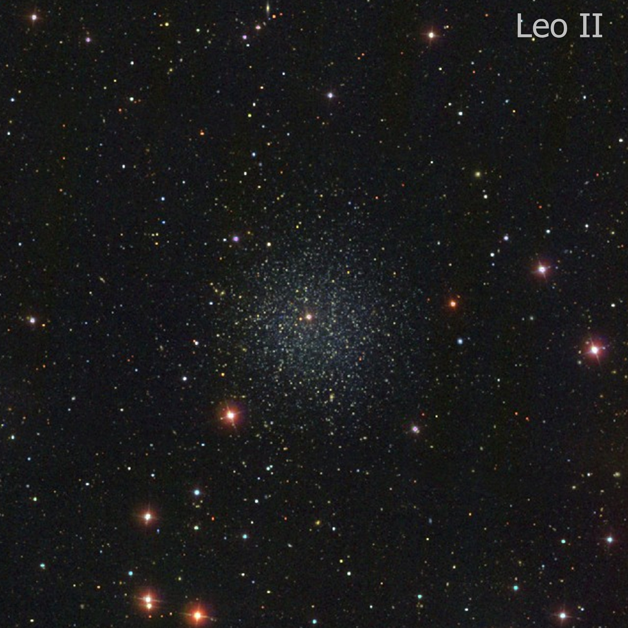 Leo II (Leo B) 11h 13m 29.2s +22° 09′ 17″ Dwarf spheroidal galaxy about 690,000 light-years |