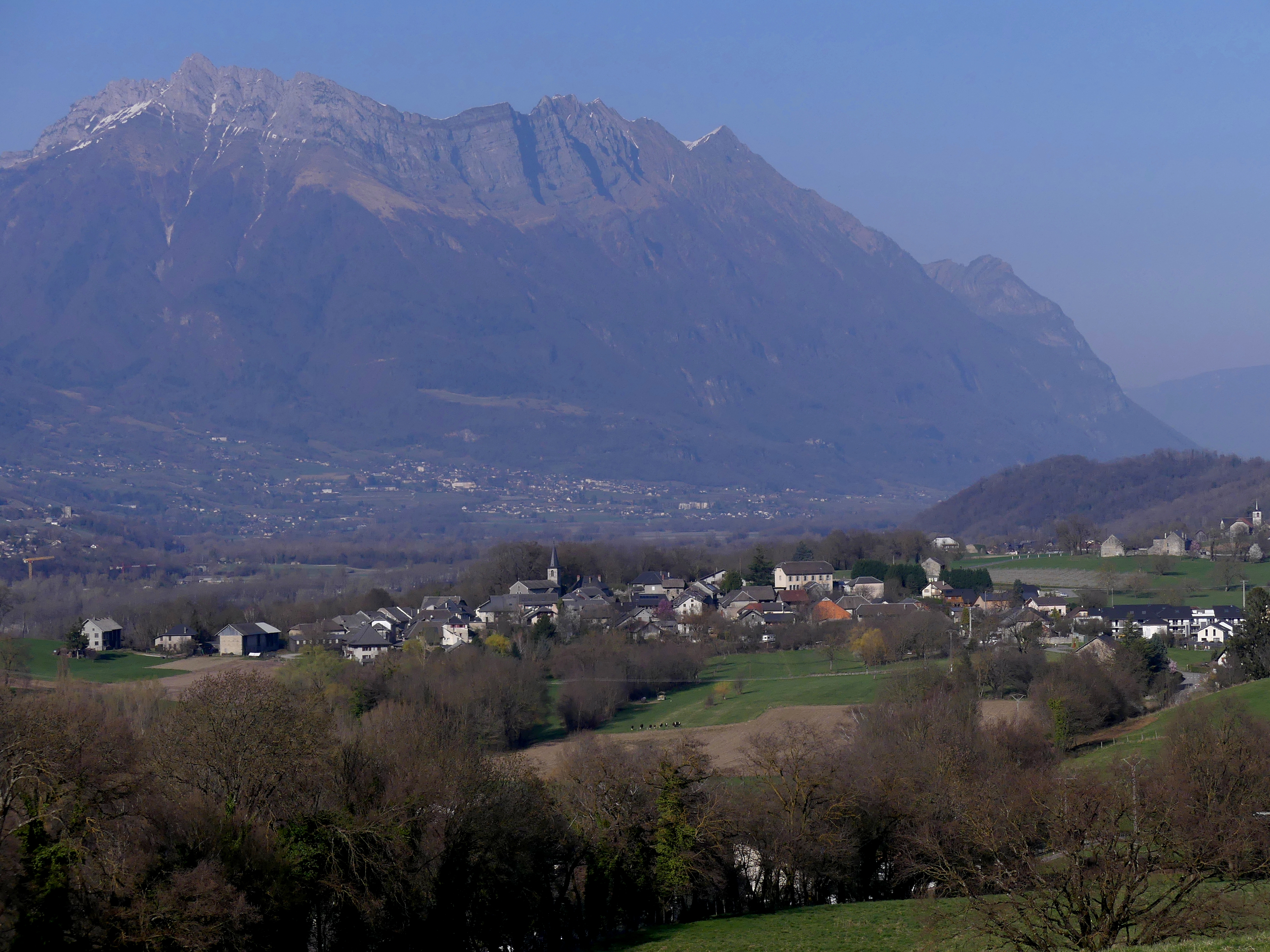 Français : Vue, en fin d'hiver, du village de La Chavanne dans la Combe de Savoie, en Savoie. |