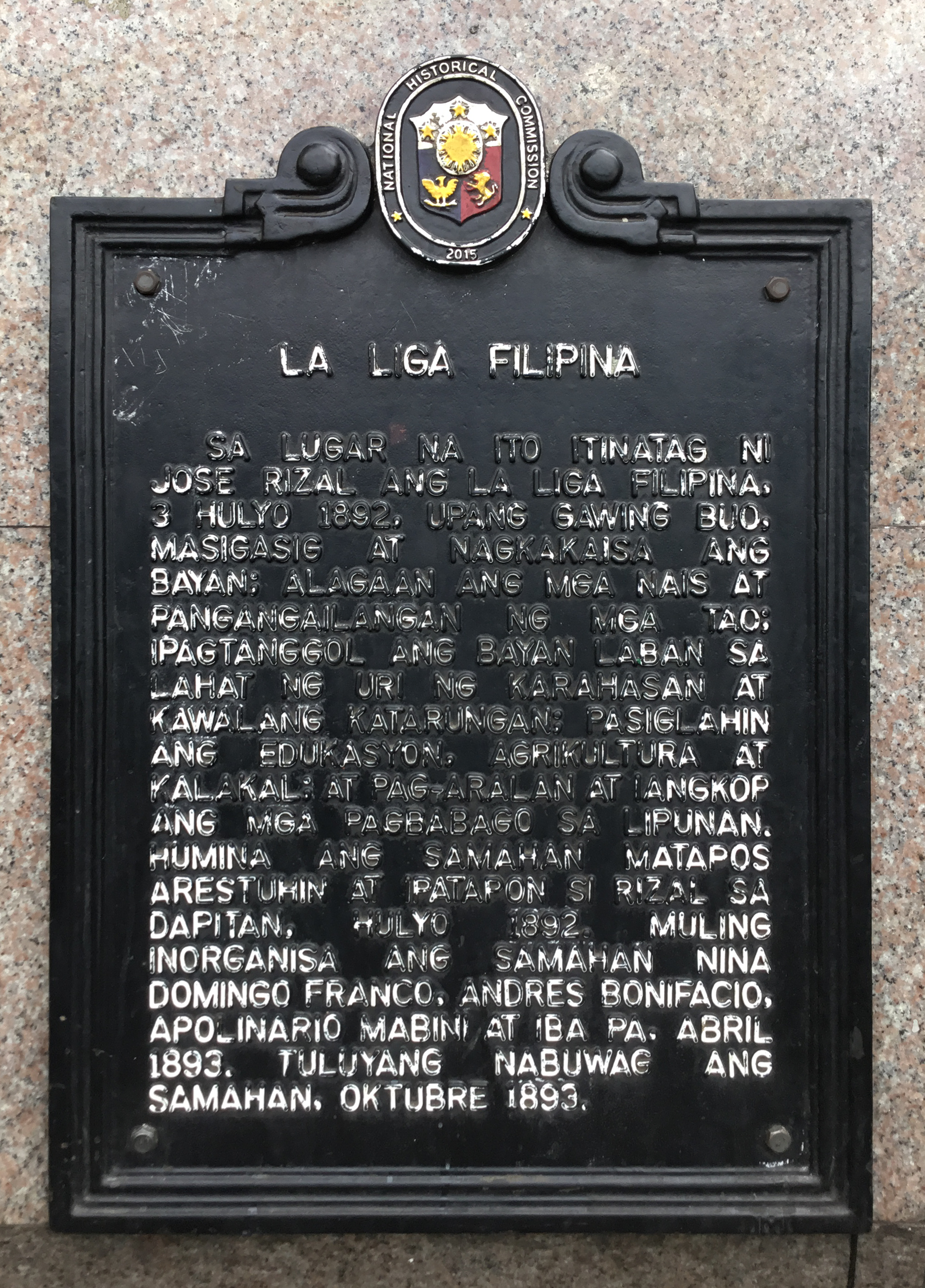 ملف:La Liga Filipina NHCP Historical Marker.png