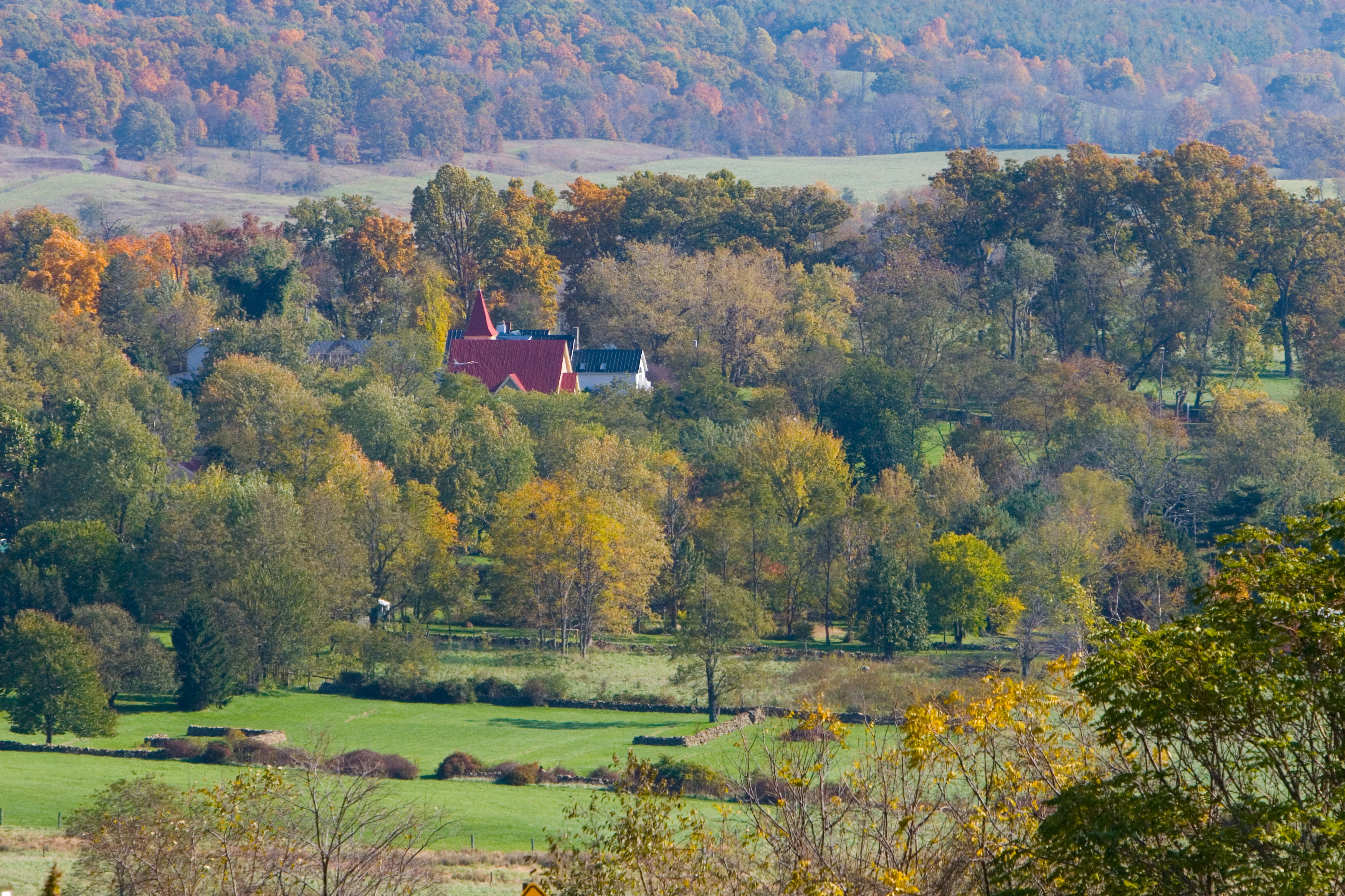 | Description | I've never had much interest in landscape photography, but shooting this scene near Delaplane, Virginia may have made me a convert. (This beautiful photo is actually of Paris, Virginia, 7 miles northwest of Delaplane. The red-roofed church is Trinity United Methodist. The black-roofed building behind and to the right of the church is Ashby Inn. Looking to the southeast. --Kenatipo (talk) 15:25, 4 September 2011 (UTC)) |