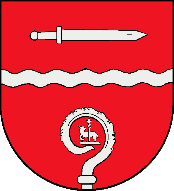Deutsch: Wappen der Gemeinde Langwedel im Kreis Rendsburg-Eckernförde, Schleswig-Holstein. Blasonierung: In Rot ein erhöhter silberner Wellenbalken, begleitet oben von einem liegenden silbernen Schwert, unten von einem wachsenden silbernen Krummstab. |
