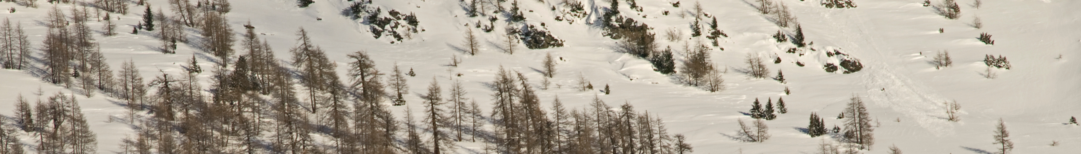 English: Wikivoyage banner for La Thuile, depicting larches and their shadows |