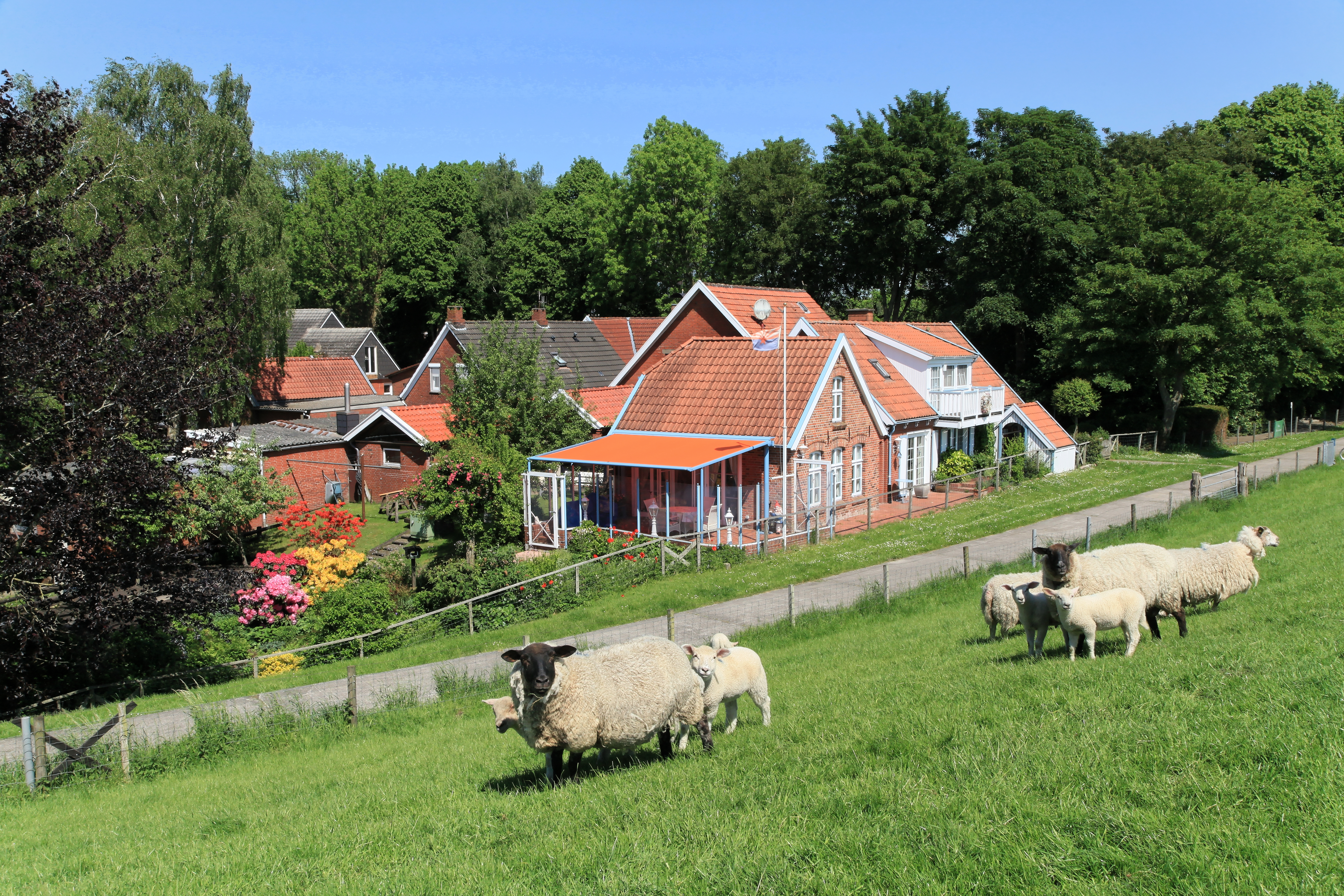 Deutsch: Kobusweg am Ledadeich in Leerort, Leer (Ostfriesland) |