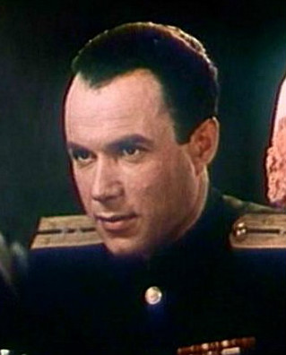 English: Leonid Gallis as Nikolai Petrovich Lavrentyev in The Train Goes East (1947) قالب:Country data Леонид Галлис в роли Николая Петровича Лаврентьева в фильме «Поезд идёт на восток» (1947) |