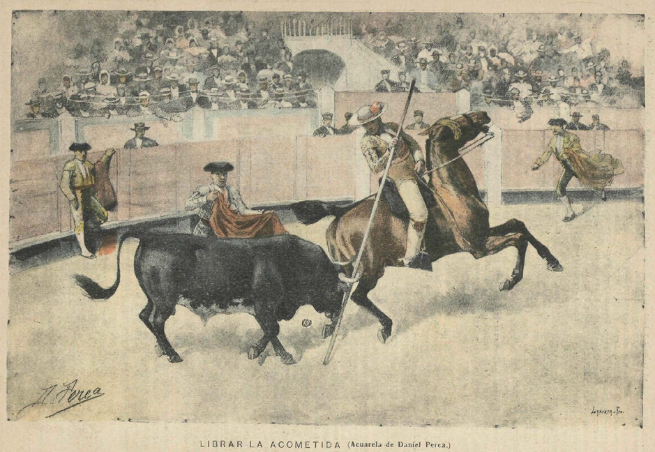 | Description | Librar la acometida, acuarela de Daniel Perea y Rojas, en la revista La Lidia. |