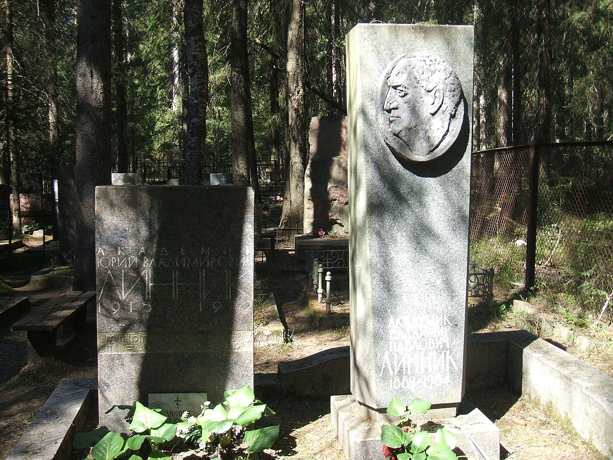 Català: Tombes del físic Vladimir Linnik i del seu fill, el matemàtic Yuri Linnik al cementiri de Komarovo